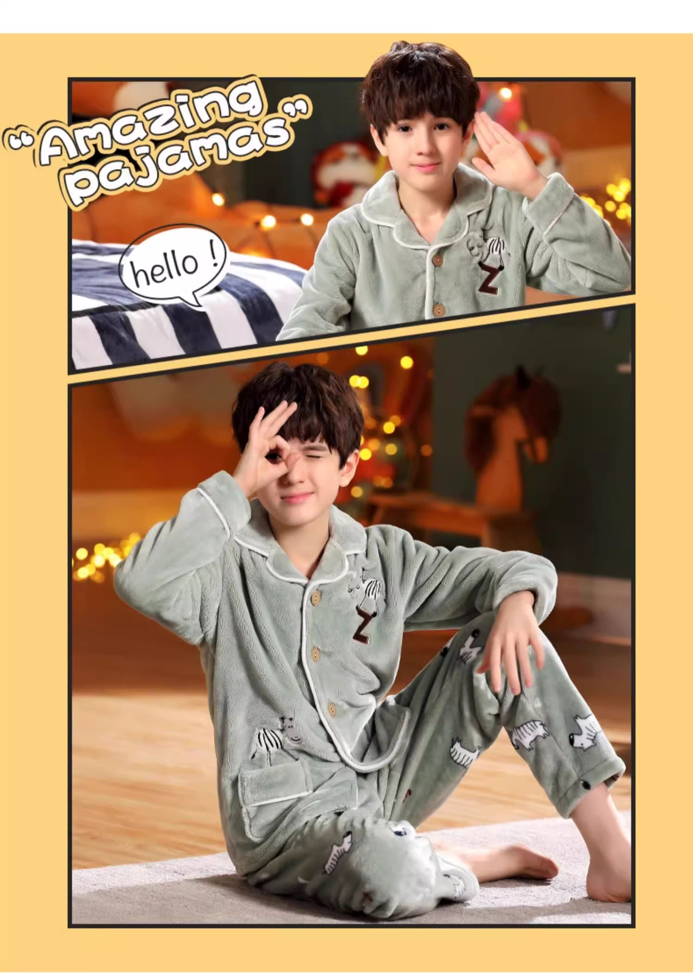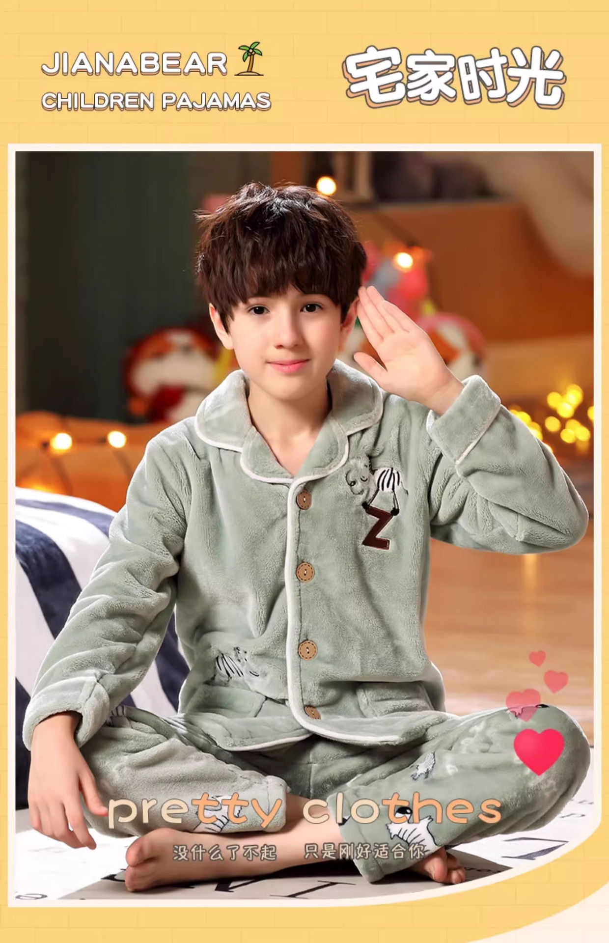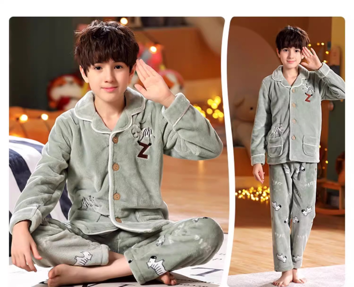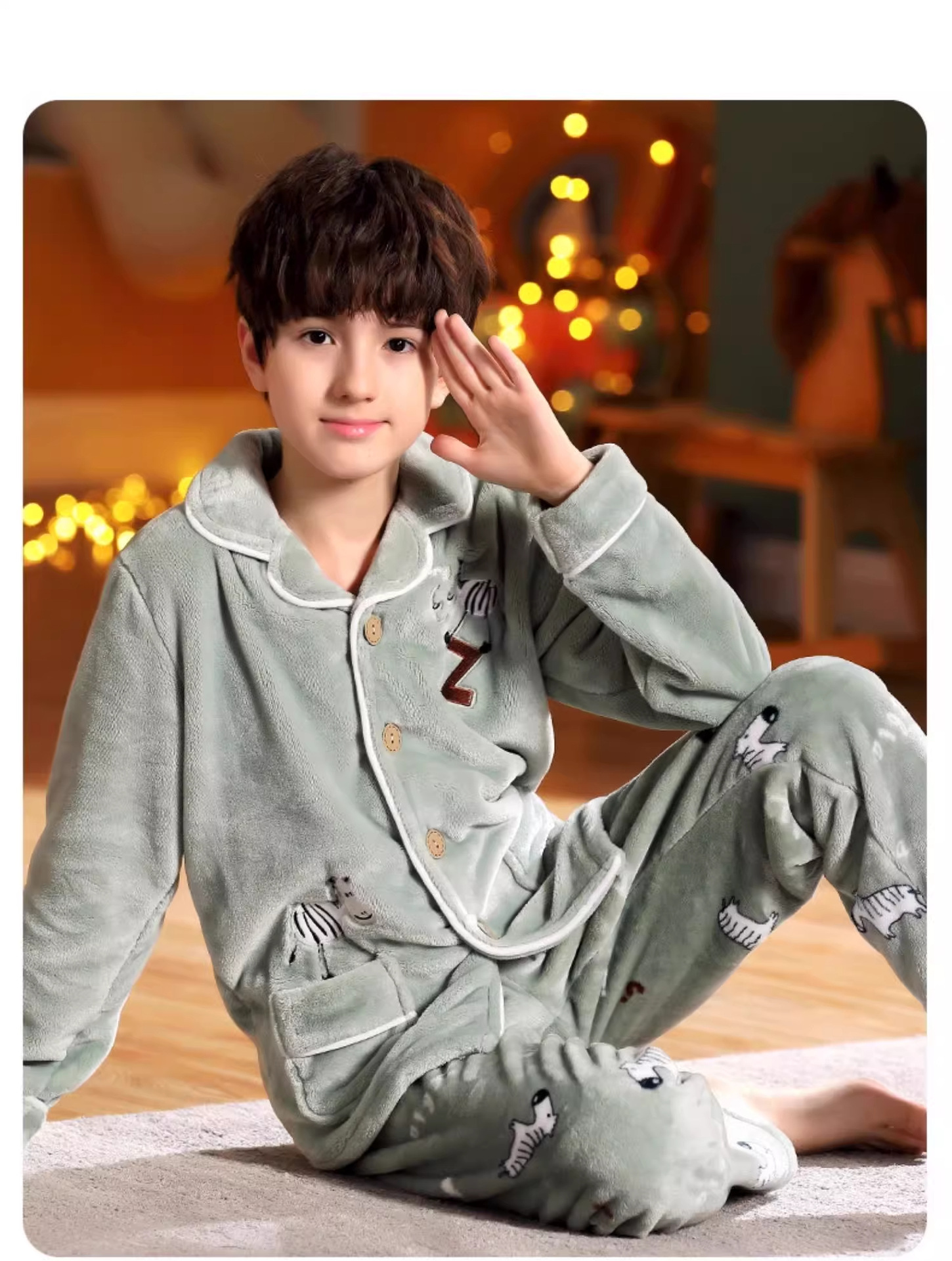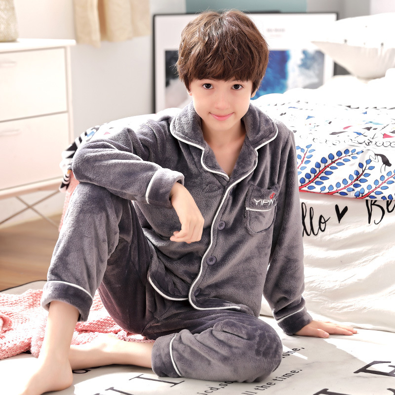 겨울 잠옷 소년의 산호 벨벳 기모 두꺼운 어린이 플란넬 가을과 겨울 어린이 세트스토어 가기