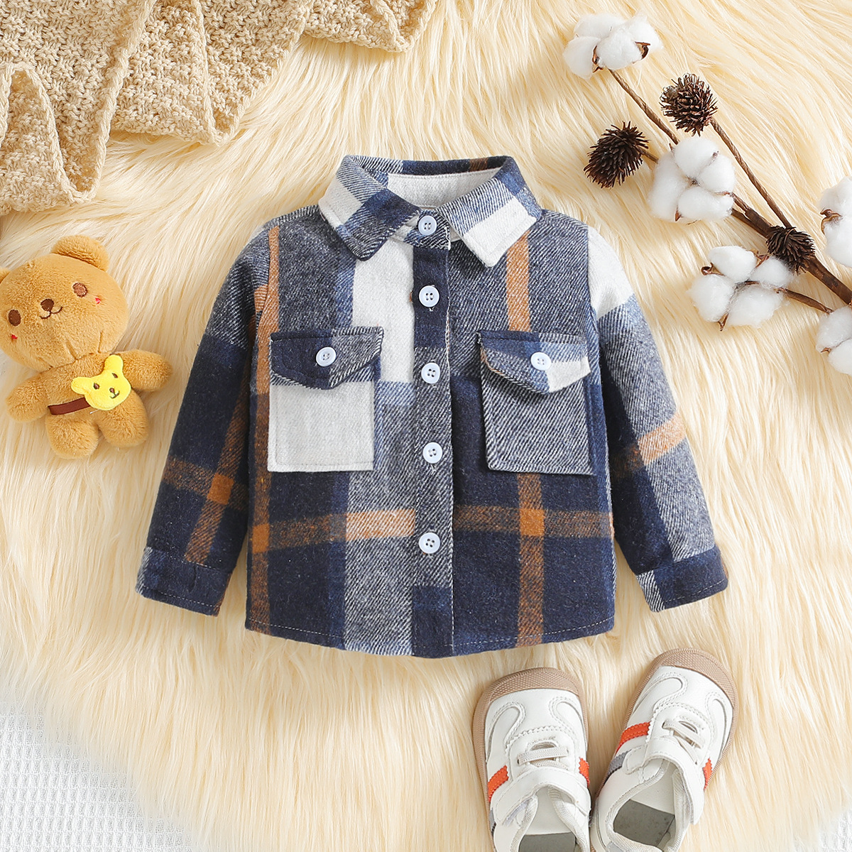 삼가미 베이비 대외 무역 아동복 봄과 가을 소년의 코트 체크 무늬 옷깃 샌딩 긴 소매 카디건 탑스토어 가기