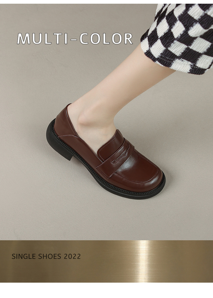 Ol 영국 스타일 슬립 온 가죽 신발 2024 포도 엄마 새 봄 가을과 겨울 스터디 로퍼 여성 두꺼운 단독스토어 가기