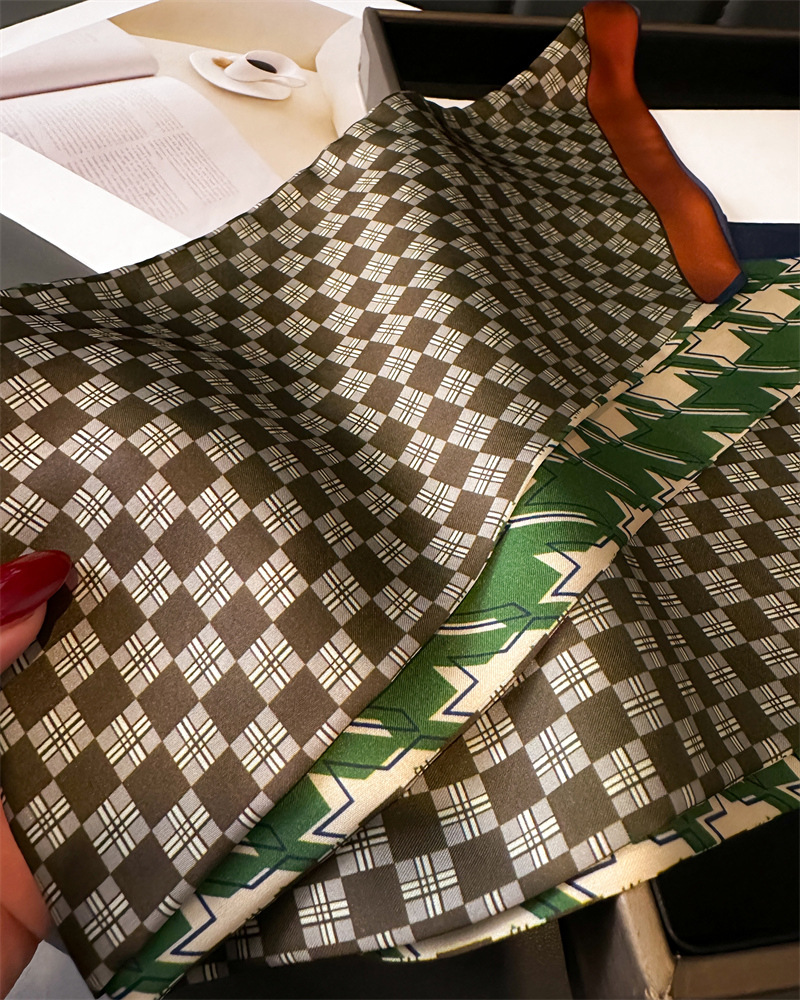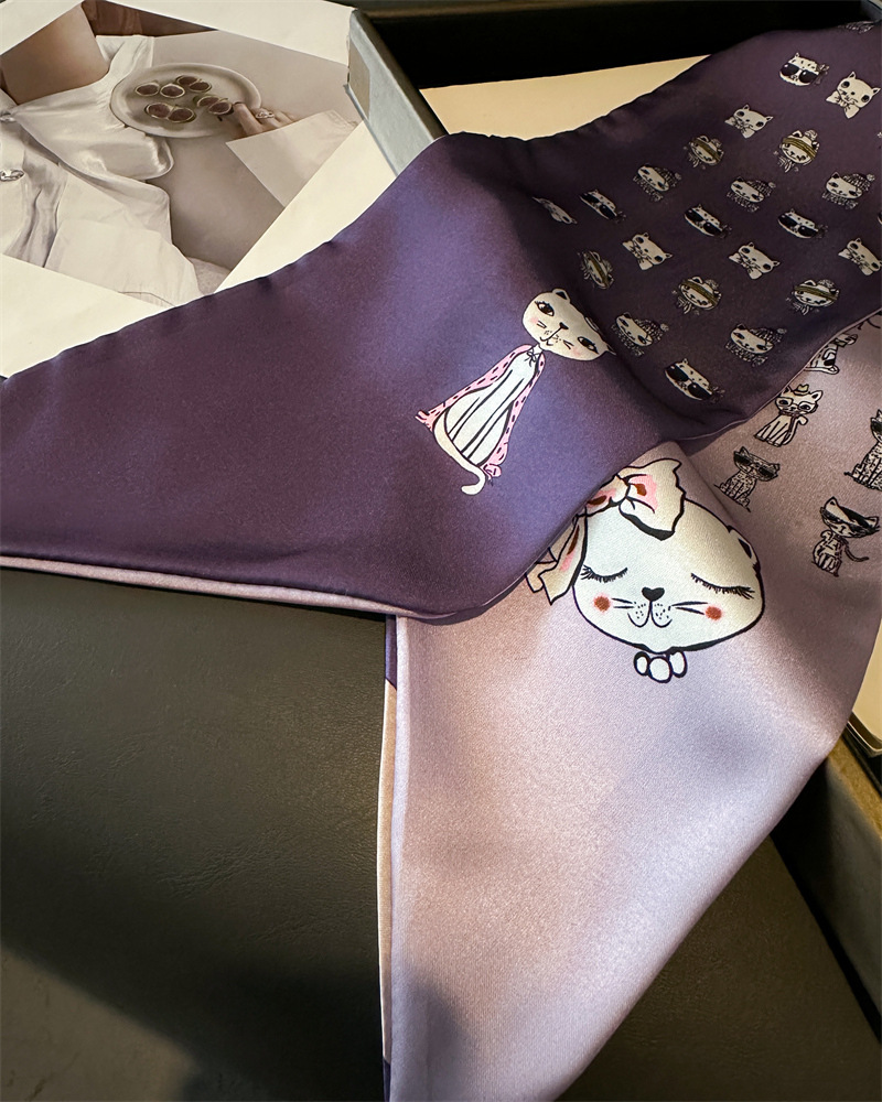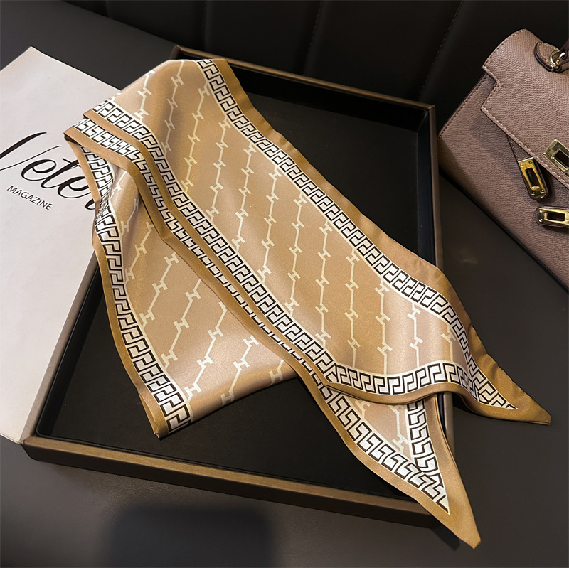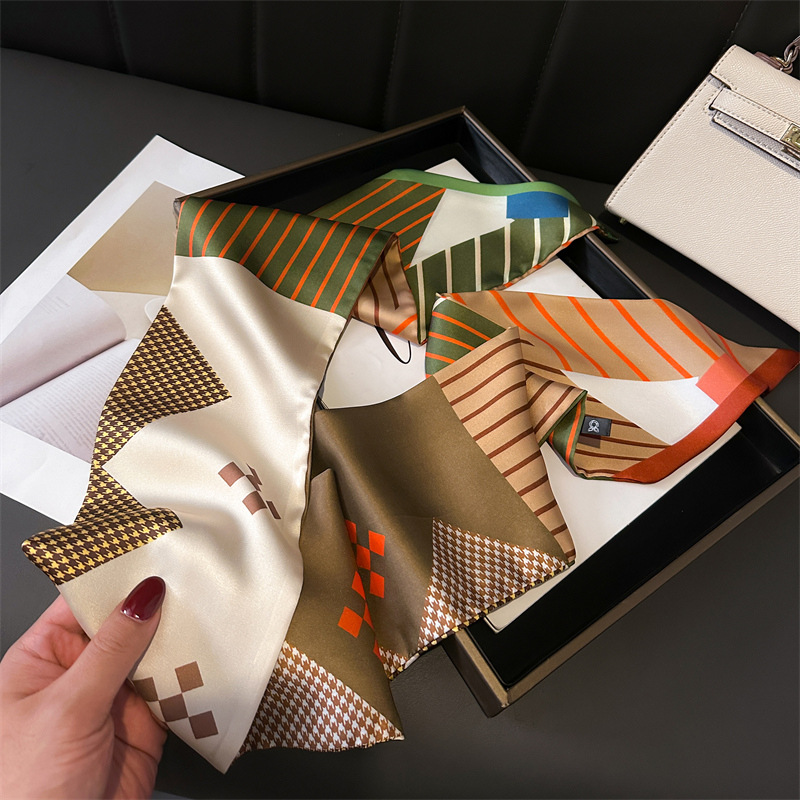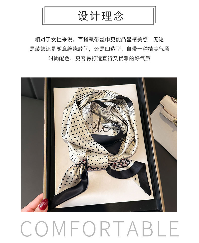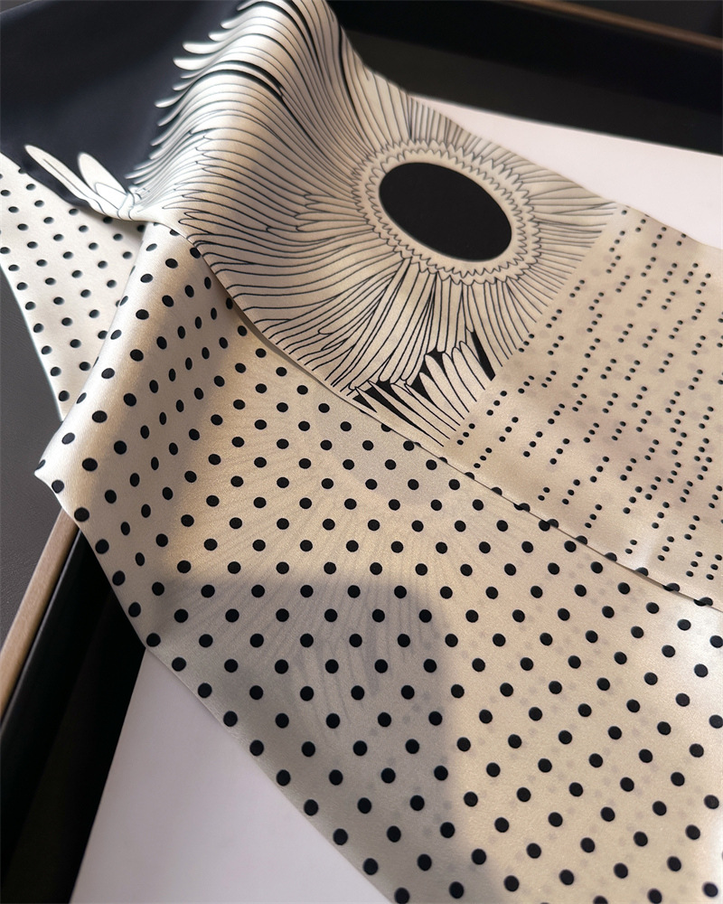 한국식 인쇄 폴라 도트 더블 레이어 스카프 장식 실크 스카프 통근 봄과 여름 베블 헤어 스카프 올매치 얇은 좁은 리본