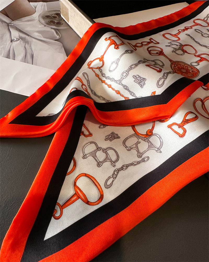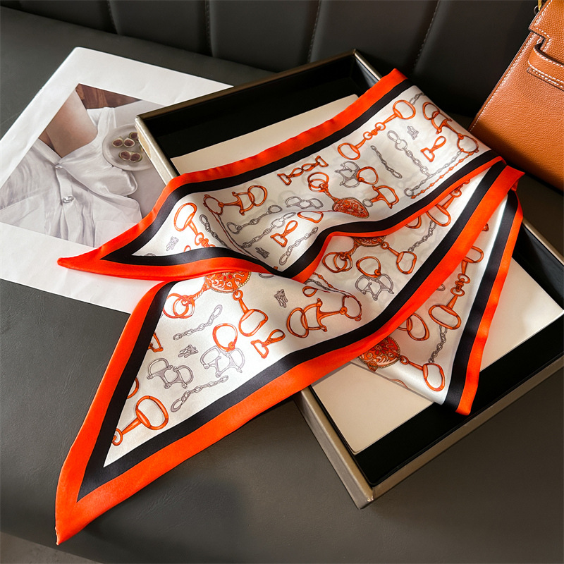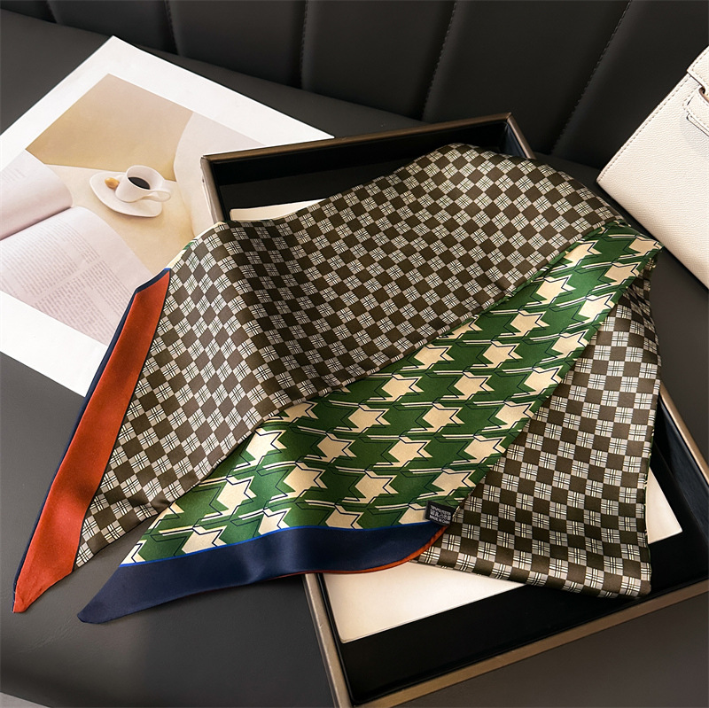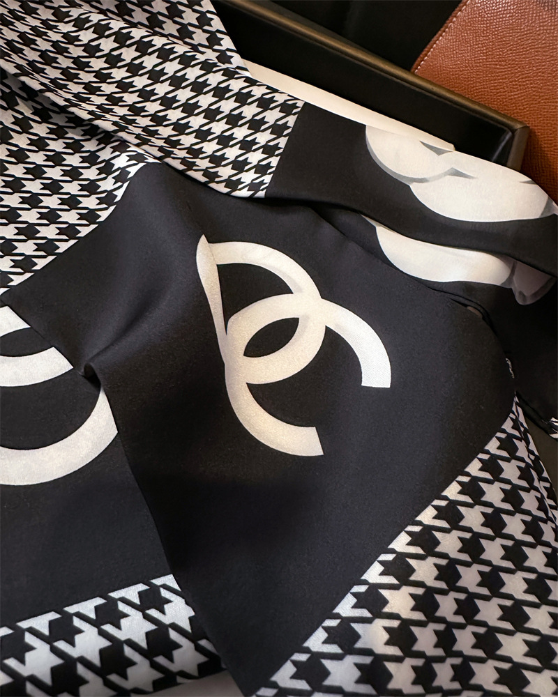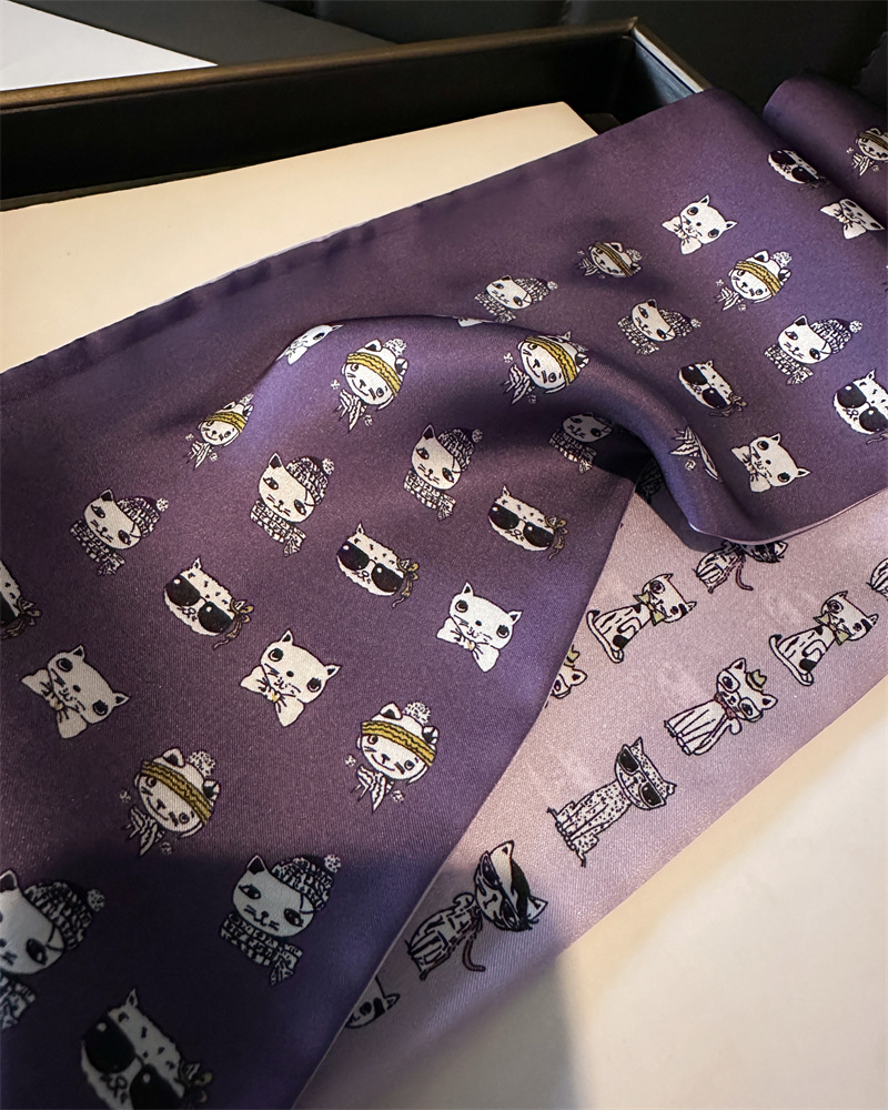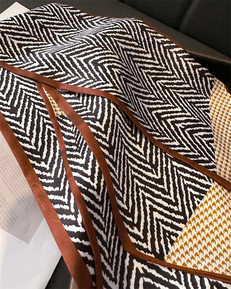 한국식 인쇄 폴라 도트 더블 레이어 스카프 장식 실크 스카프 통근 봄과 여름 베블 헤어 스카프 올매치 얇은 좁은 리본