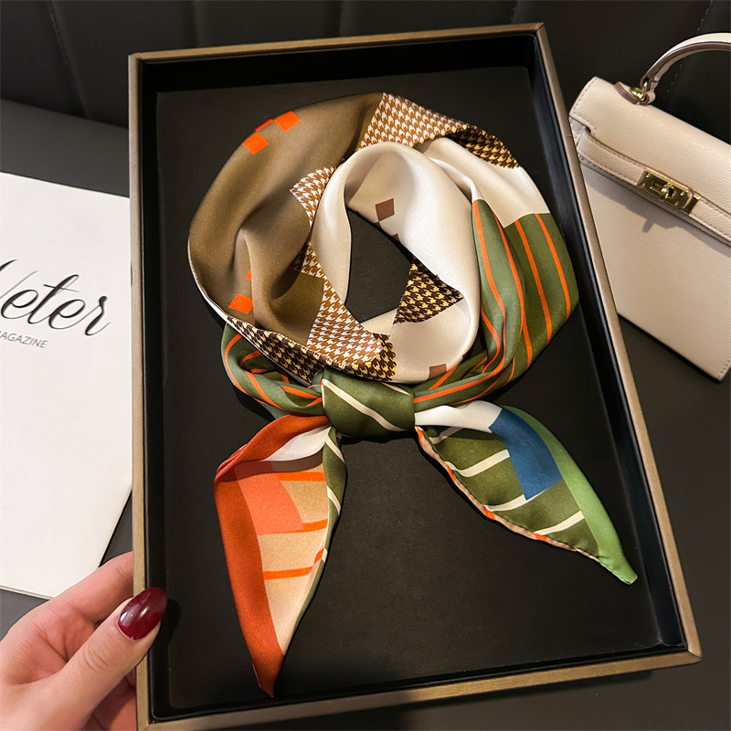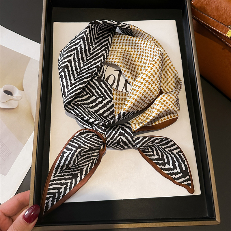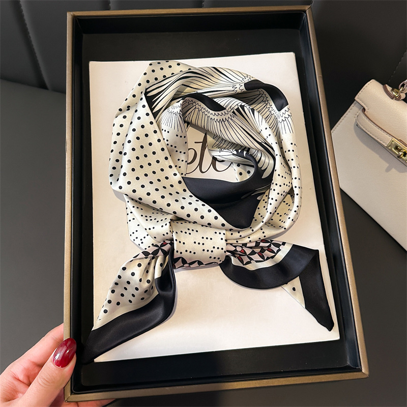 한국식 인쇄 폴라 도트 더블 레이어 스카프 장식 실크 스카프 통근 봄과 여름 베블 헤어 스카프 올매치 얇은 좁은 리본스토어 가기