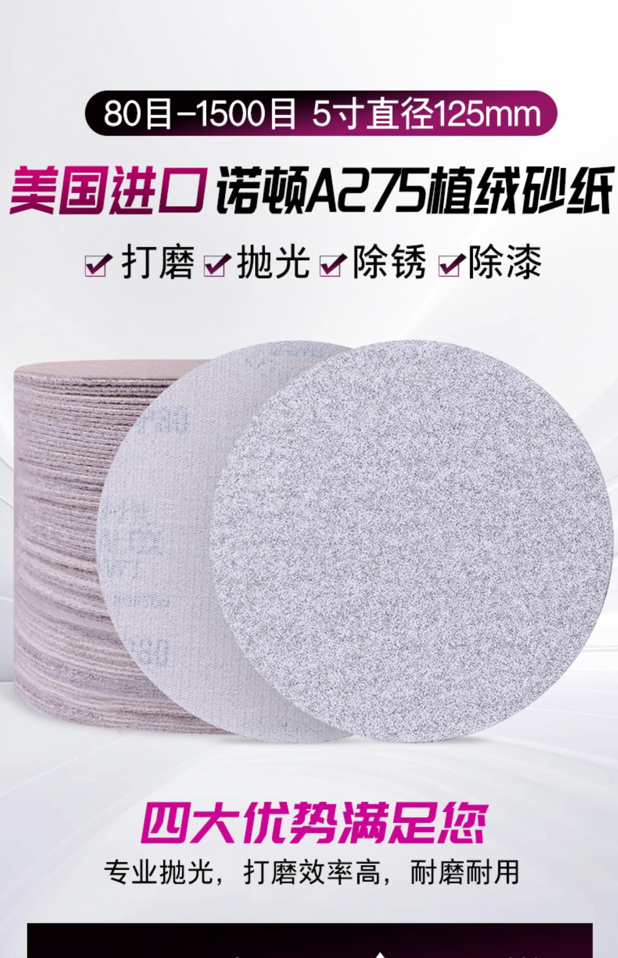 수입 Norton A275 건식 종이 목공 가구 페인트 벽 연마 및 연마 125mm 사포