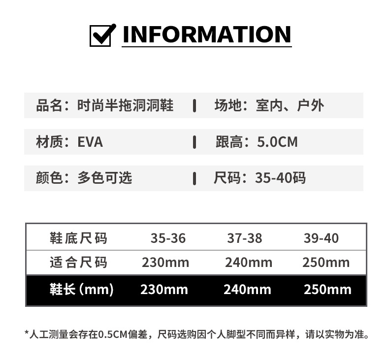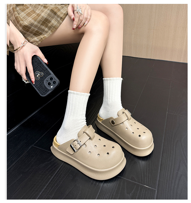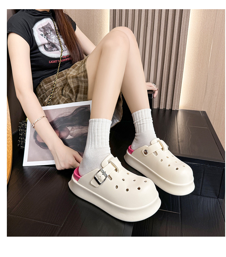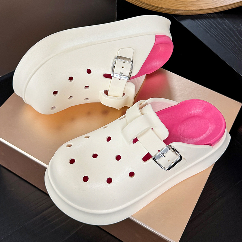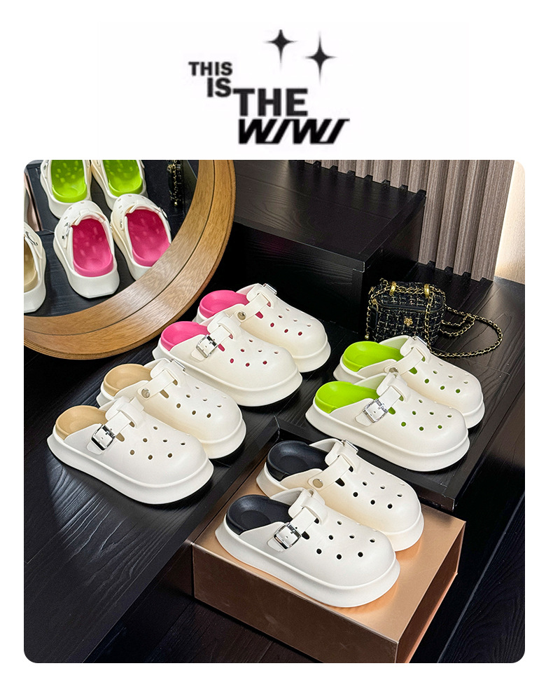 25 년 새 여름 구멍 신발 소녀의 EVA 외부 착용 Smelly Feet Baotou 하프 슬리퍼 인터넷 축하 패션 조커 슬리퍼