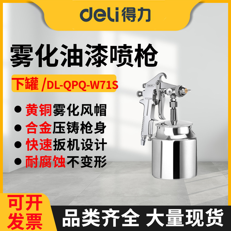 델리 스프레이 페인트 건 DL-QPQ-W71S 하부 탱크 공압 자동차 페인트 분무 라텍스 페인트 스프레이 건 고점도스토어 가기