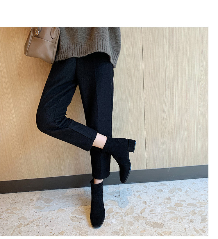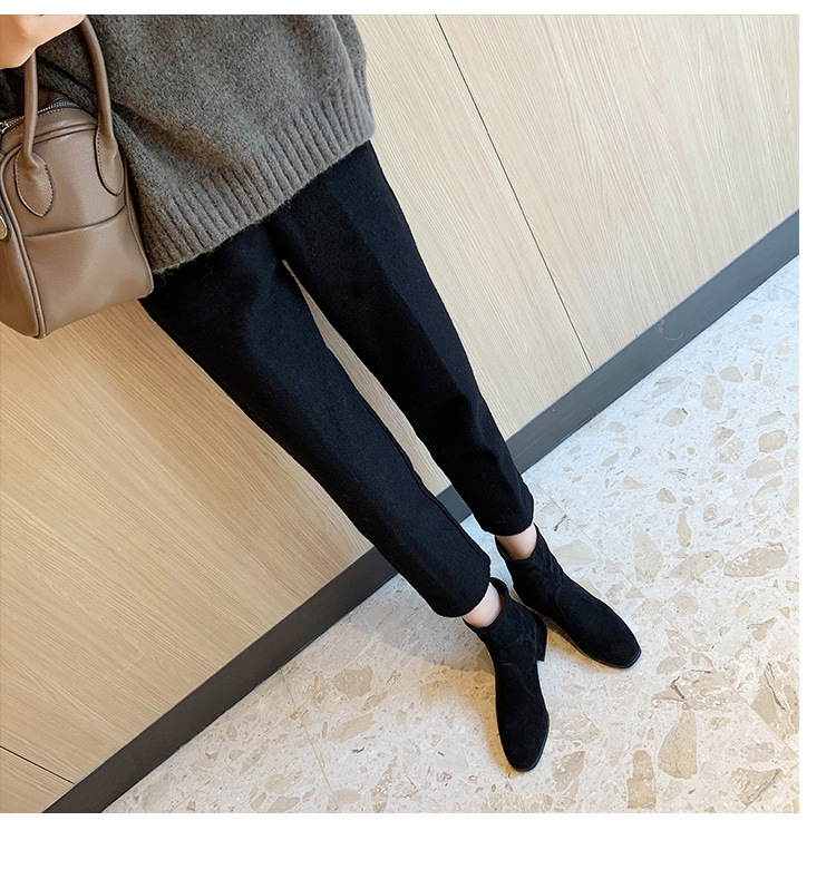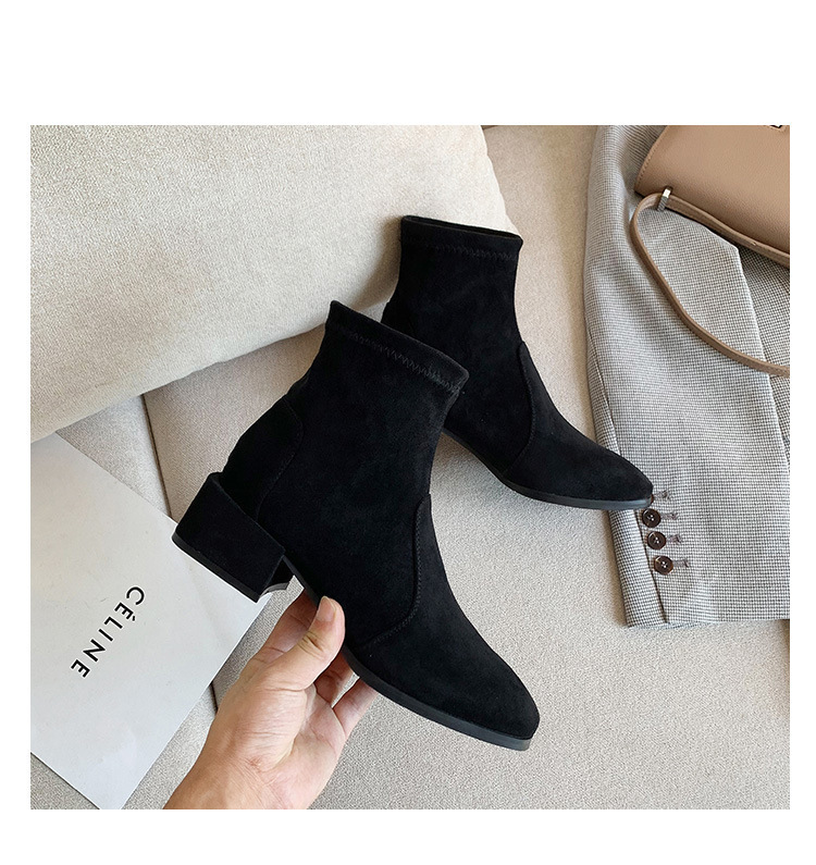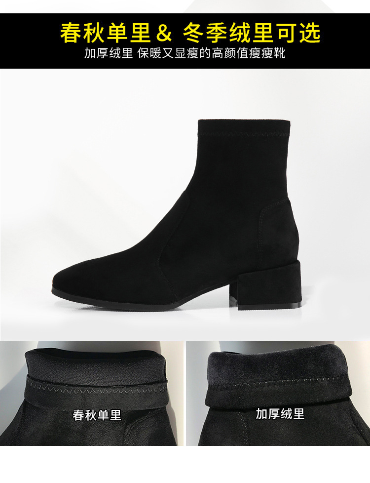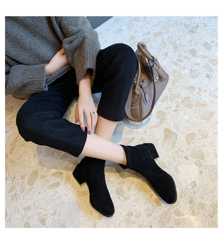 새로운 정품 가죽 88 슬림 부츠 스웨이드 마틴 부츠 짧은 부츠 여성용 탄성 스퀘어 토 8 두꺼운 굽 가을 중간 굽 가을 겨울스토어 가기