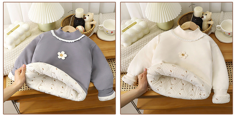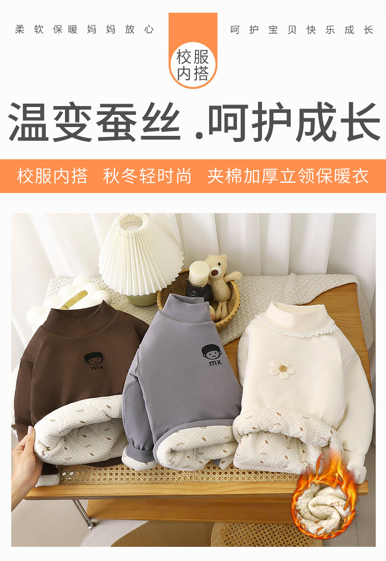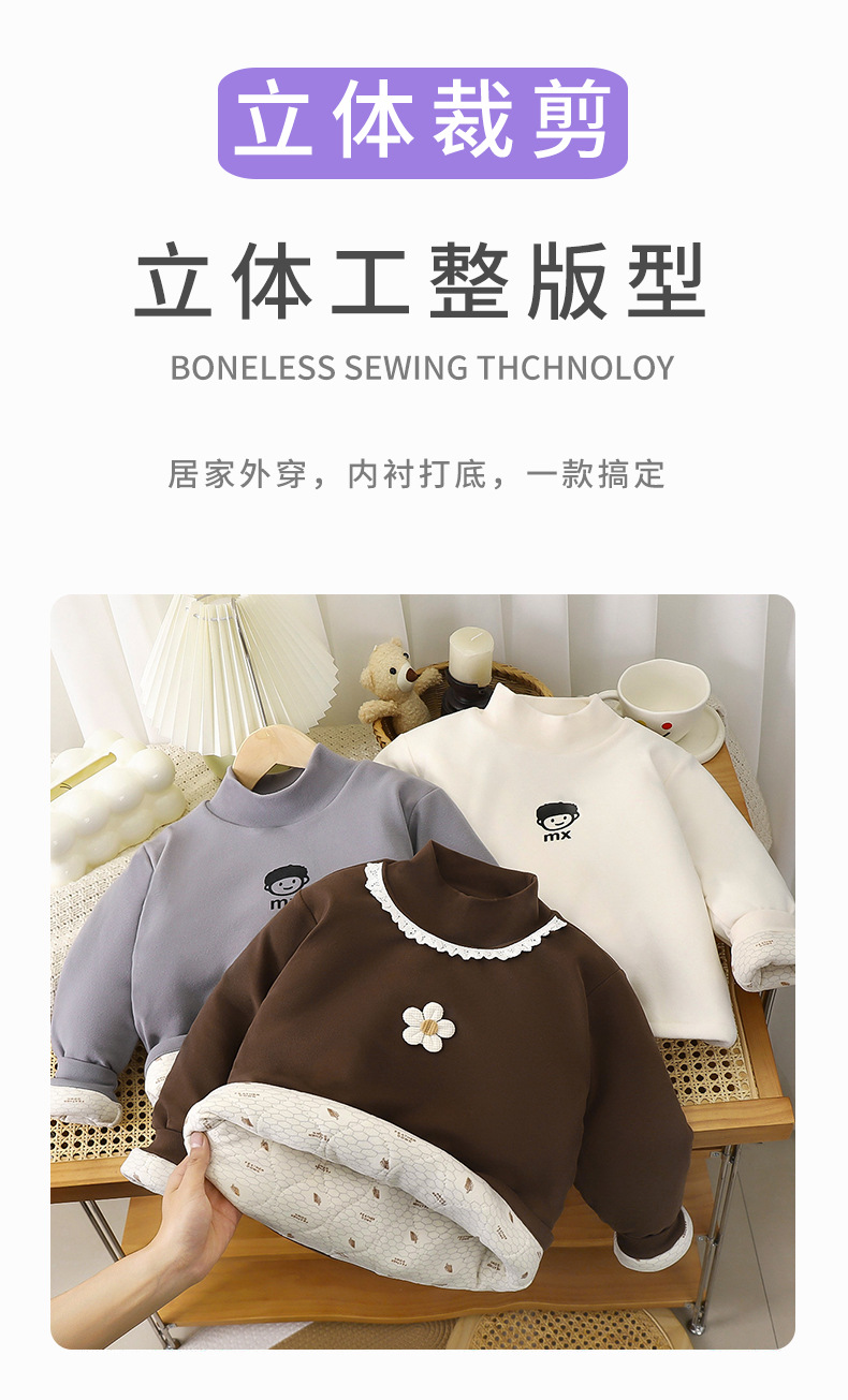 2025 가을 겨울 신상품, 벨벳 안감과 두꺼운 소재의 아동용 스웨트셔츠, 남아 여아용 만화 캐릭터 단일 상의, 중소 아동용 누빔 안감 셔츠스토어 가기