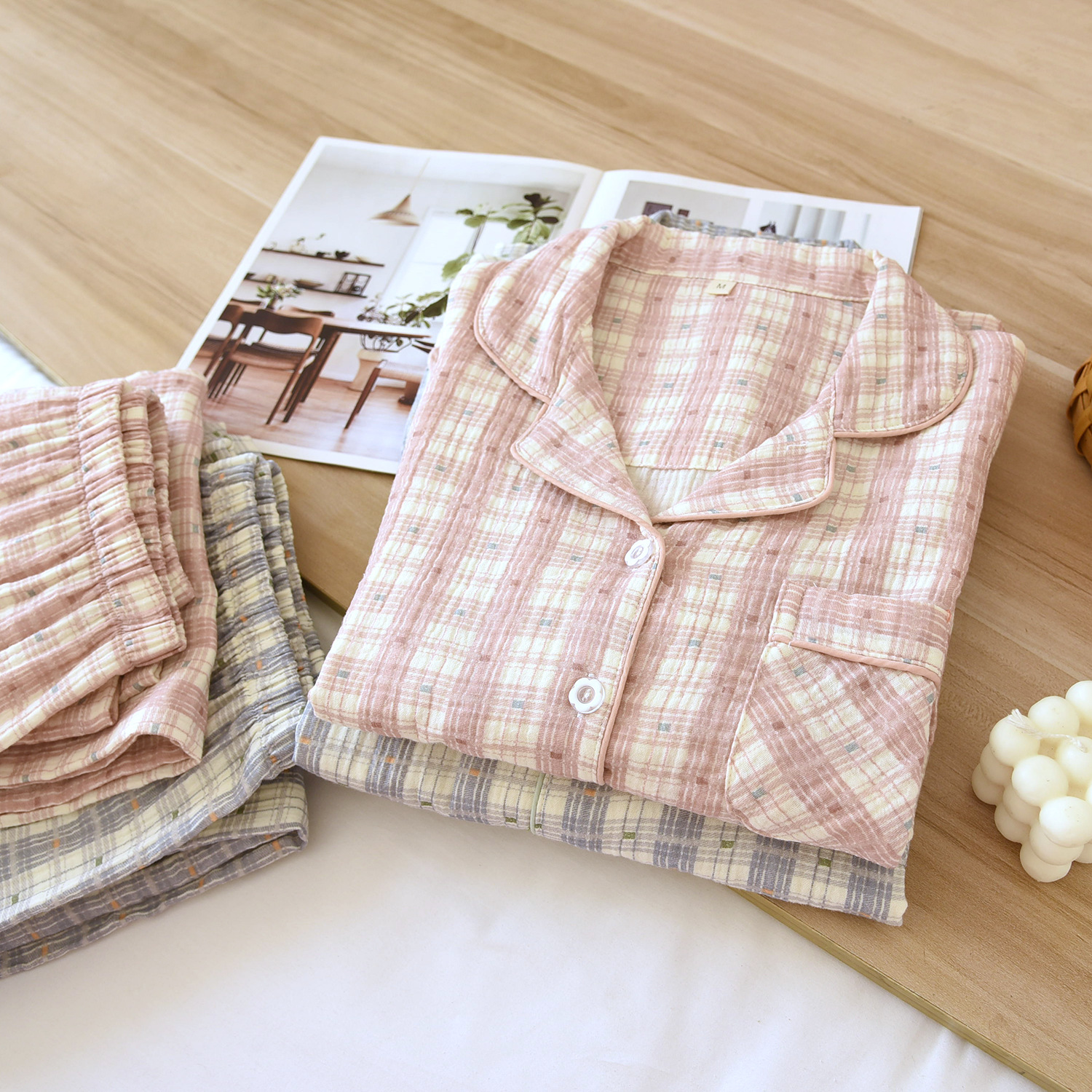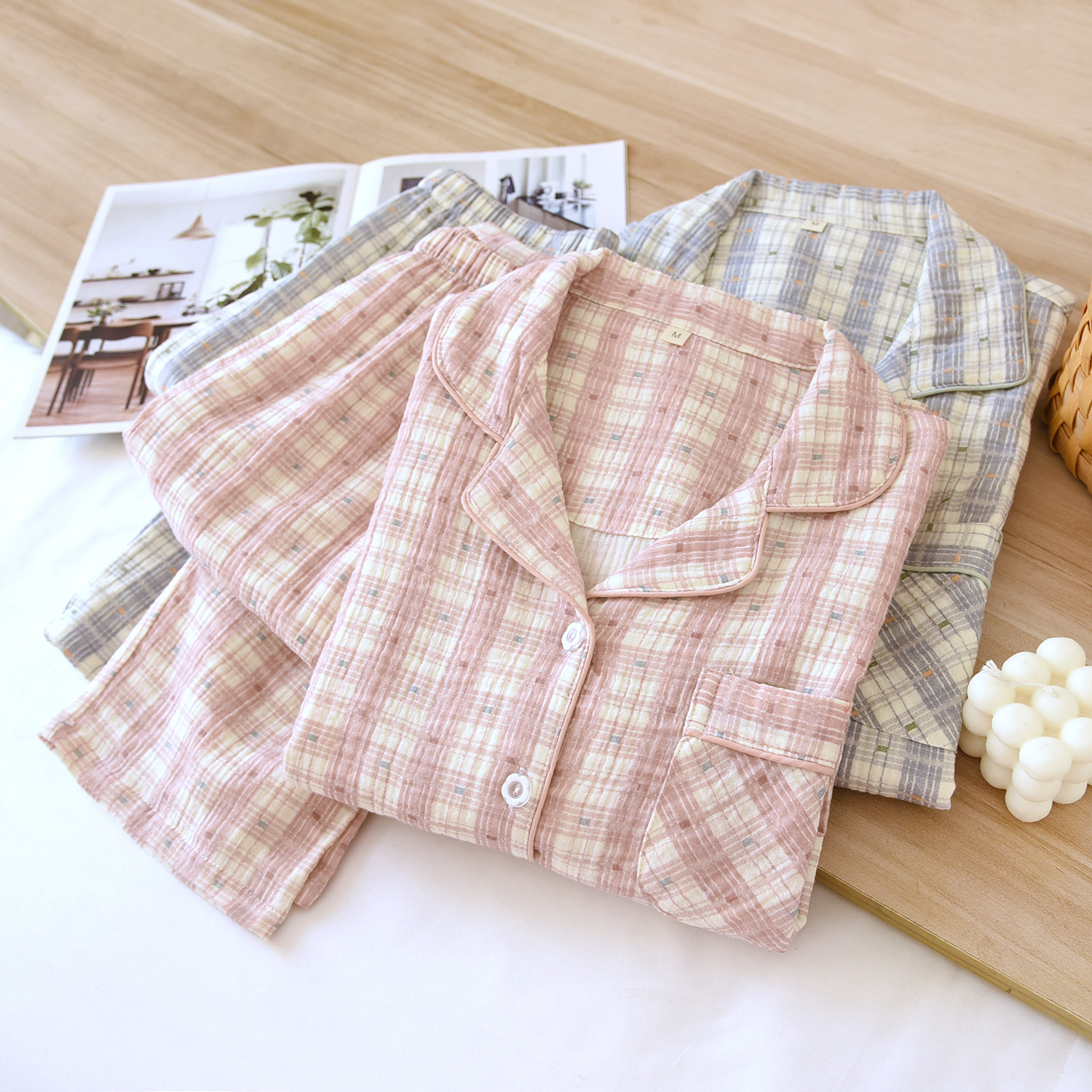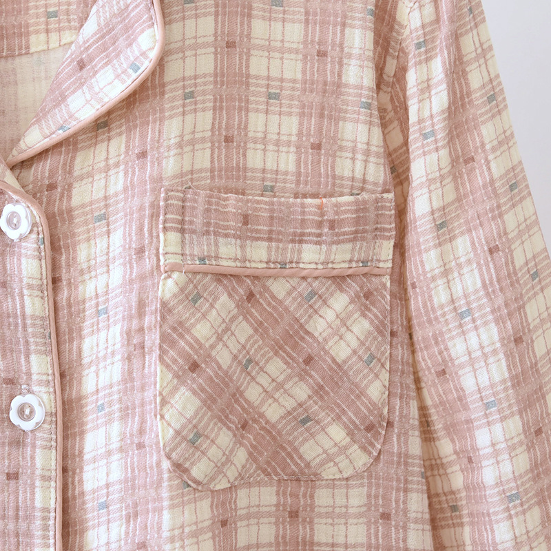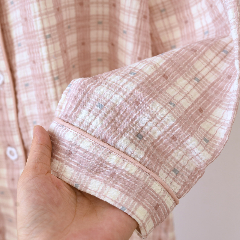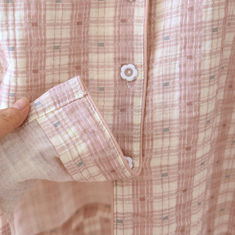크레페 커플 잠옷 플러스 사이즈 남녀 크레페 코튼 홈 옷 더블 거즈 긴 소매 바지 얇은 사계절 잠옷스토어 가기