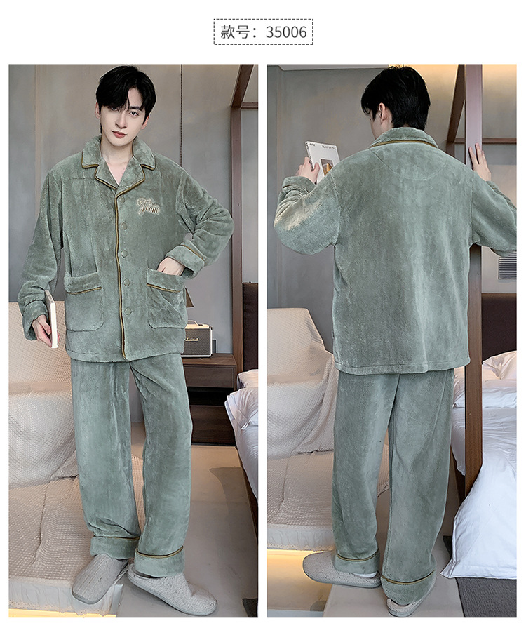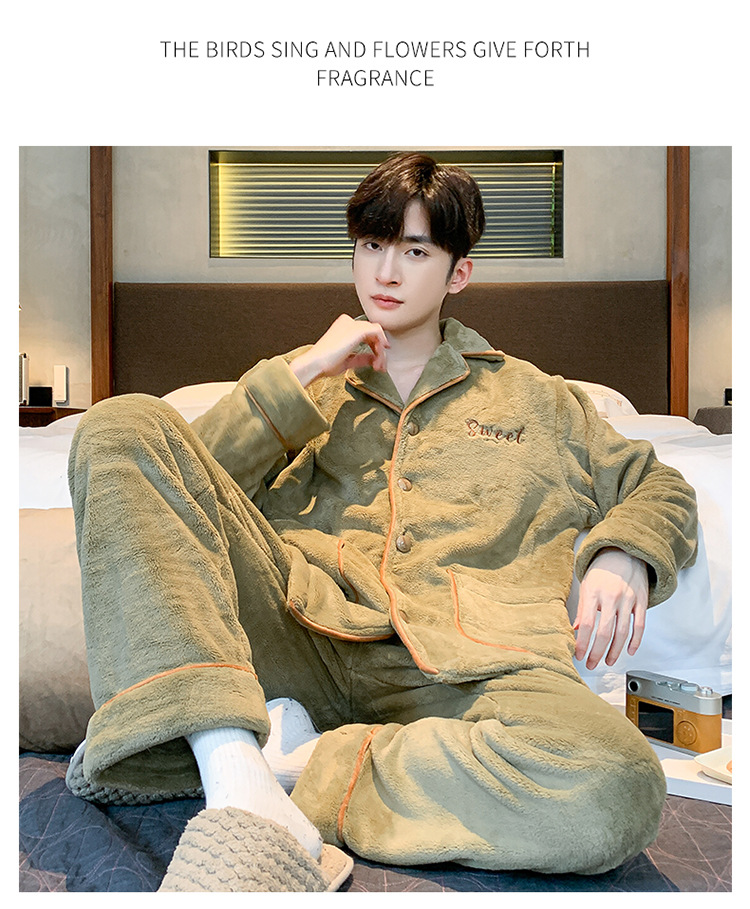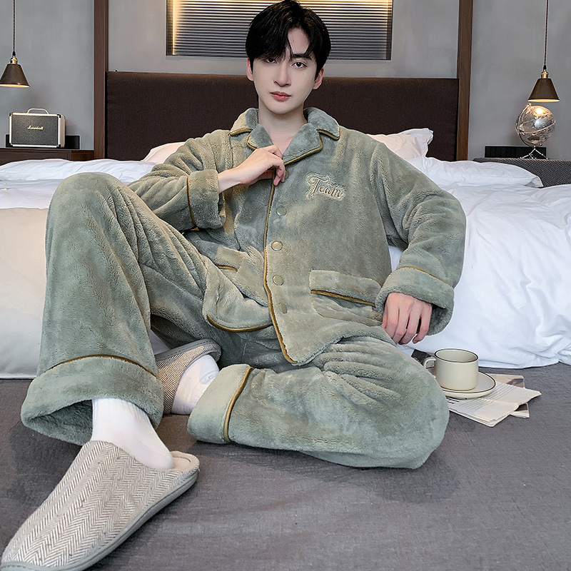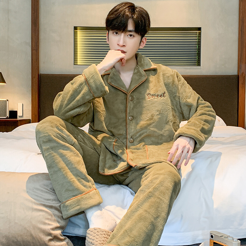 산호 벨벳 파자마 남자 겨울 2024 새로운 도착 기모 두꺼운 따뜻한 겨울 플란넬 남자 홈 의류 세트