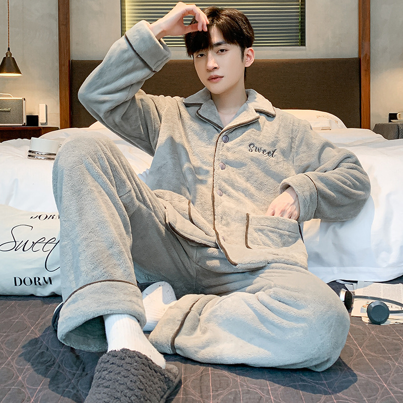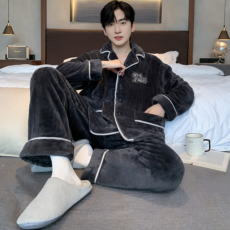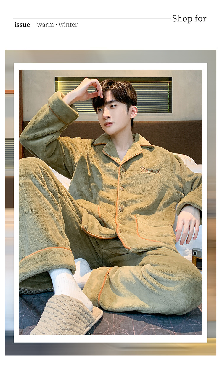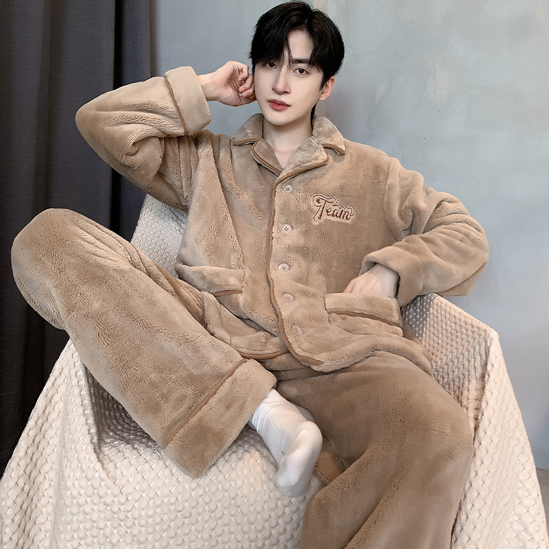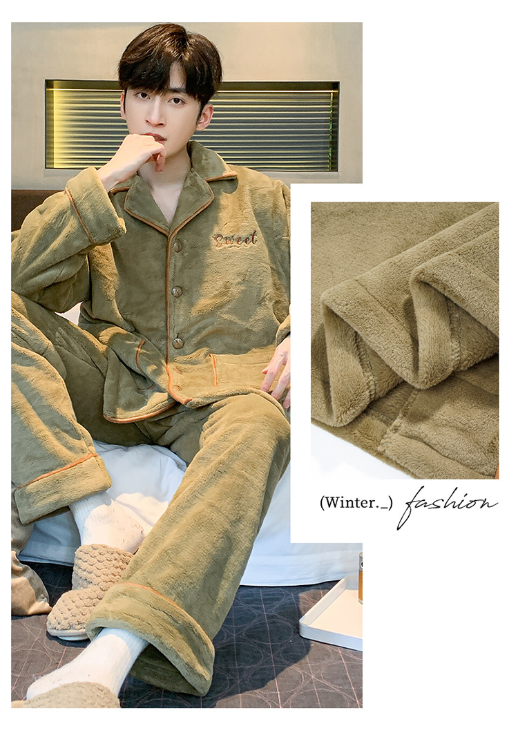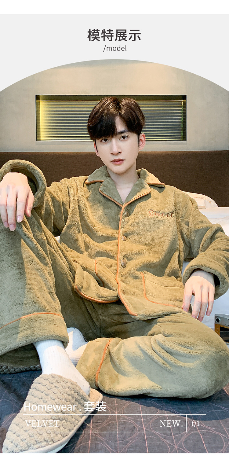 산호 벨벳 파자마 남자 겨울 2024 새로운 도착 기모 두꺼운 따뜻한 겨울 플란넬 남자 홈 의류 세트스토어 가기