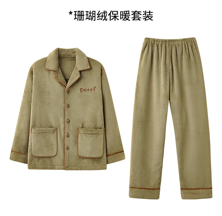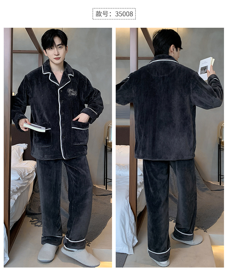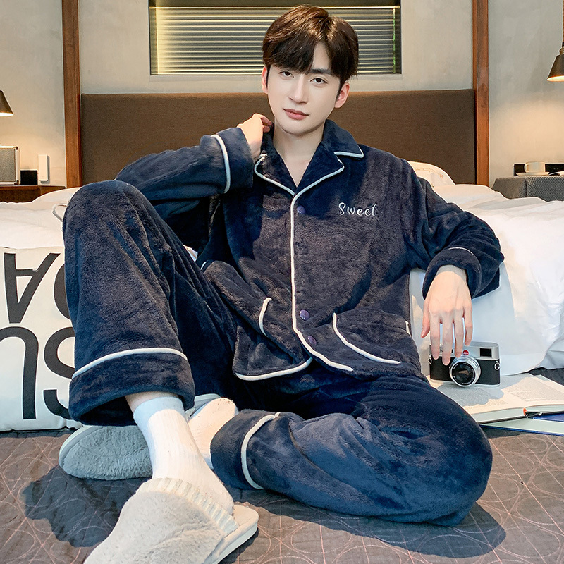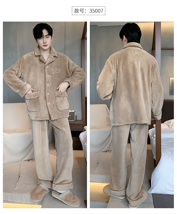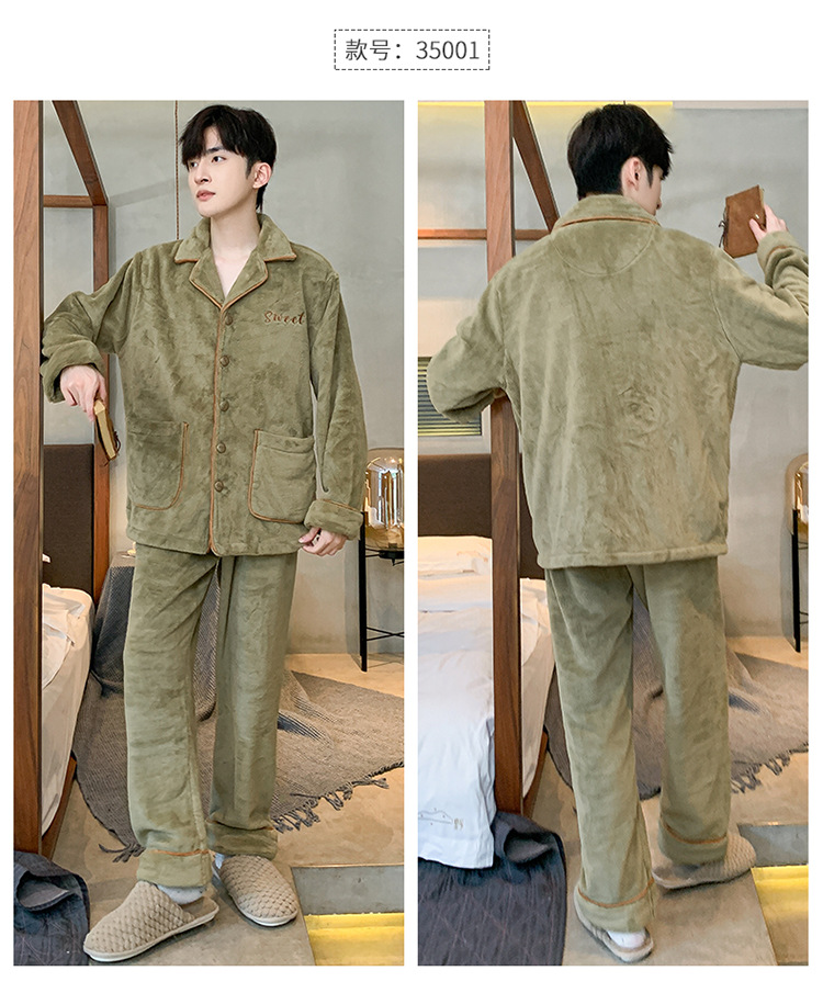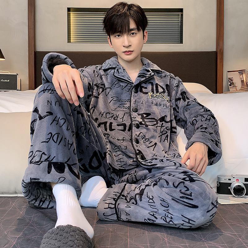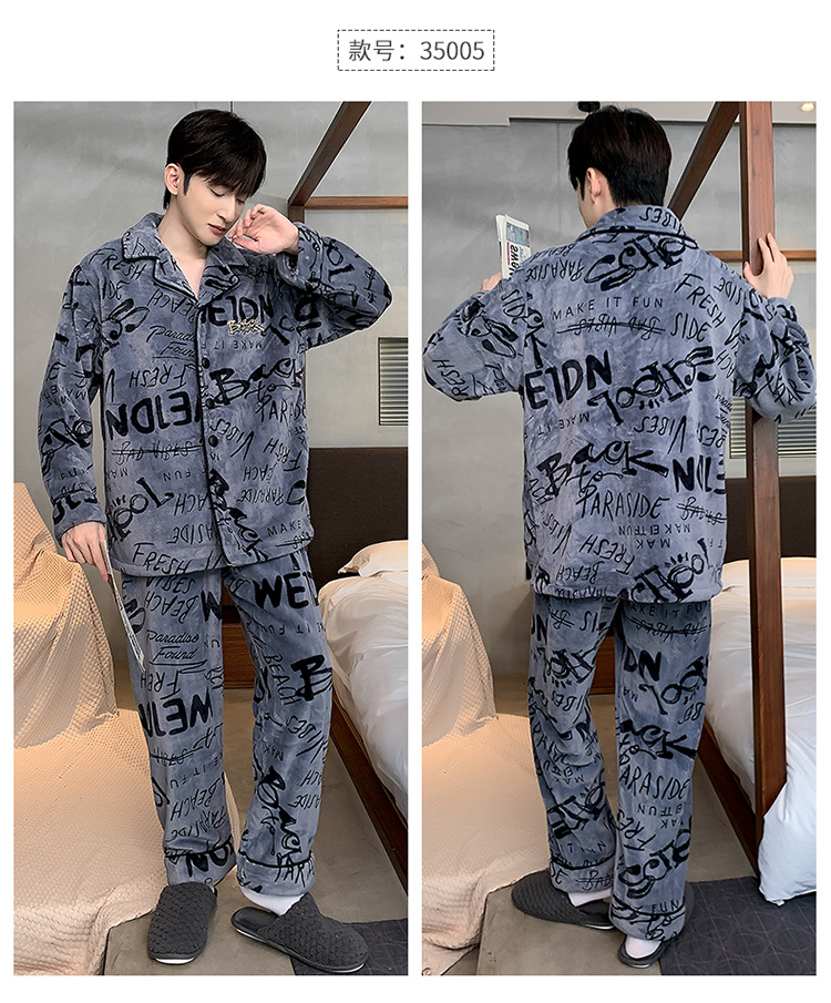 산호 벨벳 파자마 남자 겨울 2024 새로운 도착 기모 두꺼운 따뜻한 겨울 플란넬 남자 홈 의류 세트스토어 가기