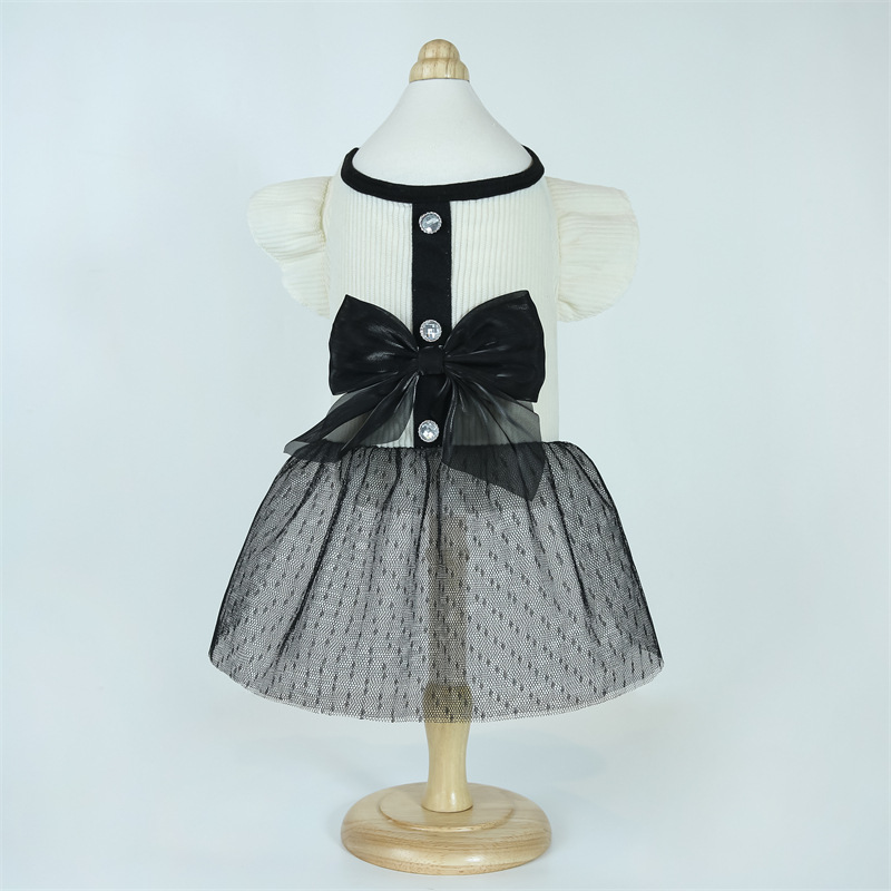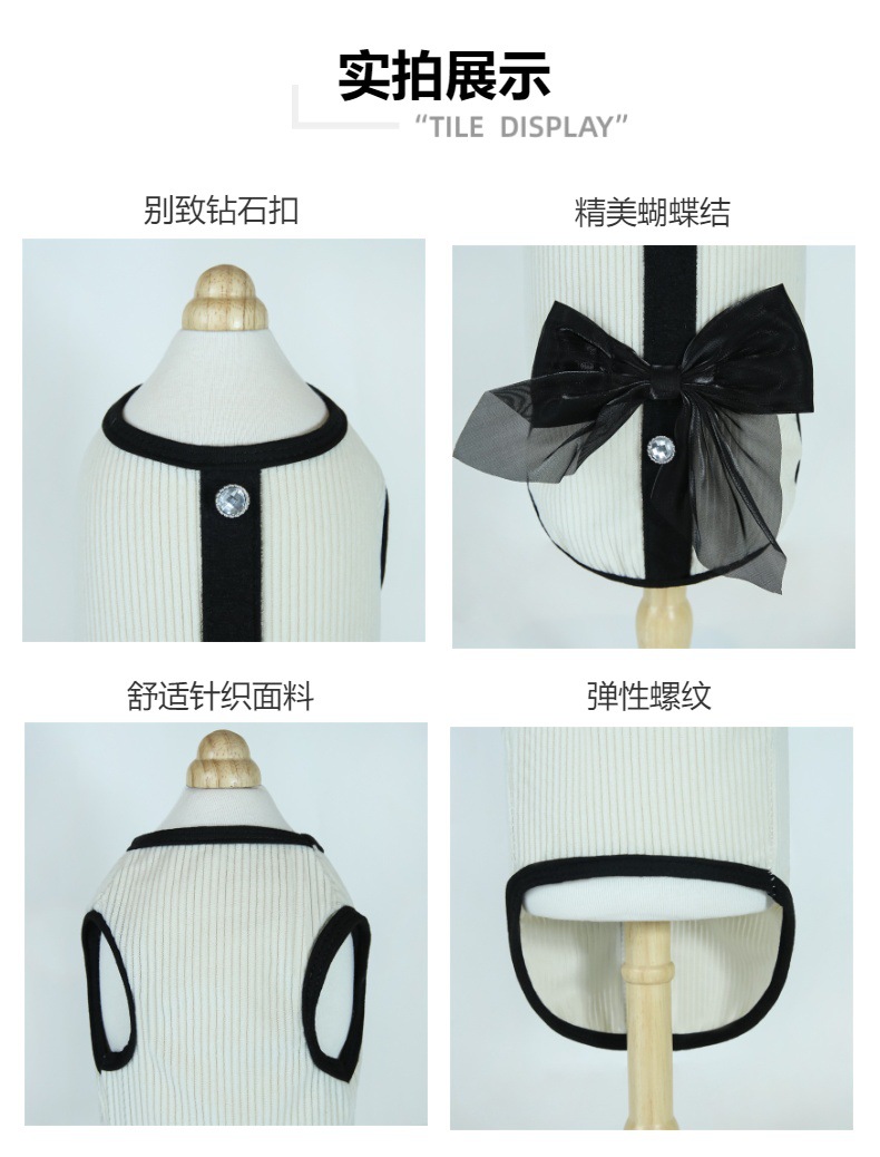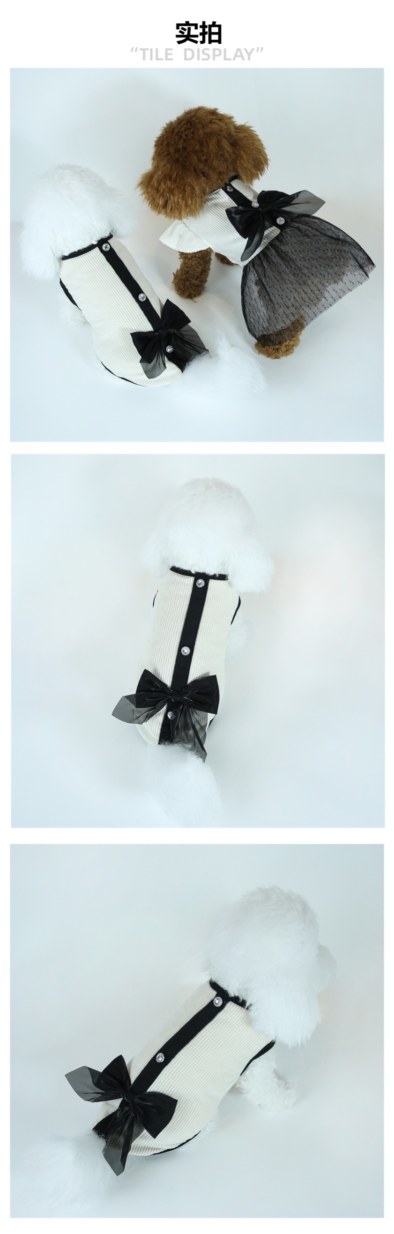 봄과 여름 새로운 복고풍 작은 향기 스타일 커플 드레스 보우 스커트 비숑 테디 포메라니안 개 옷 작은 개스토어 가기