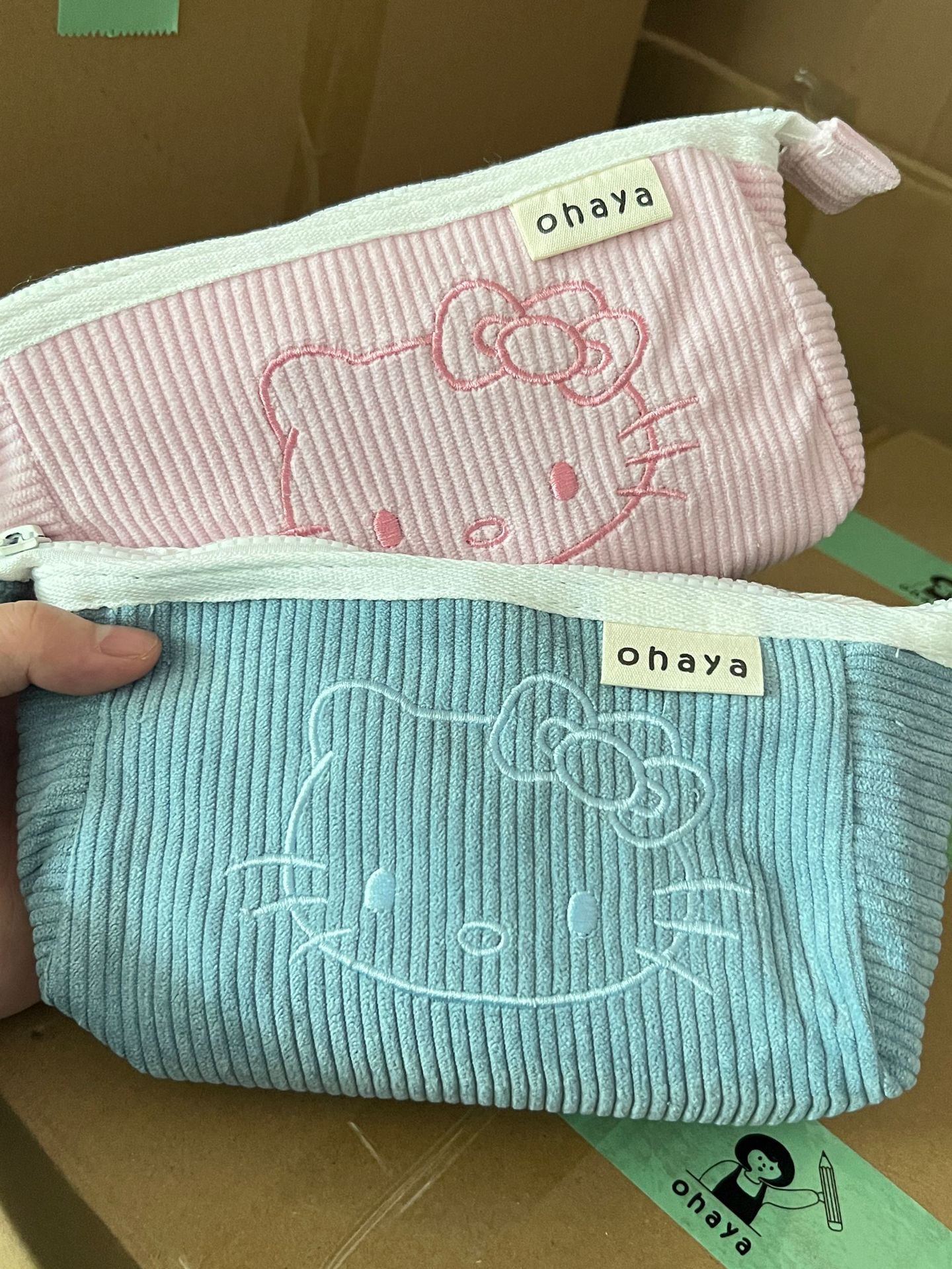 헬로 키티 연필 케이스 소녀 하트 코듀로이 헬로 키티 대용량 문구 보관 가방 데스크탑 마무리 연필 케이스스토어 가기