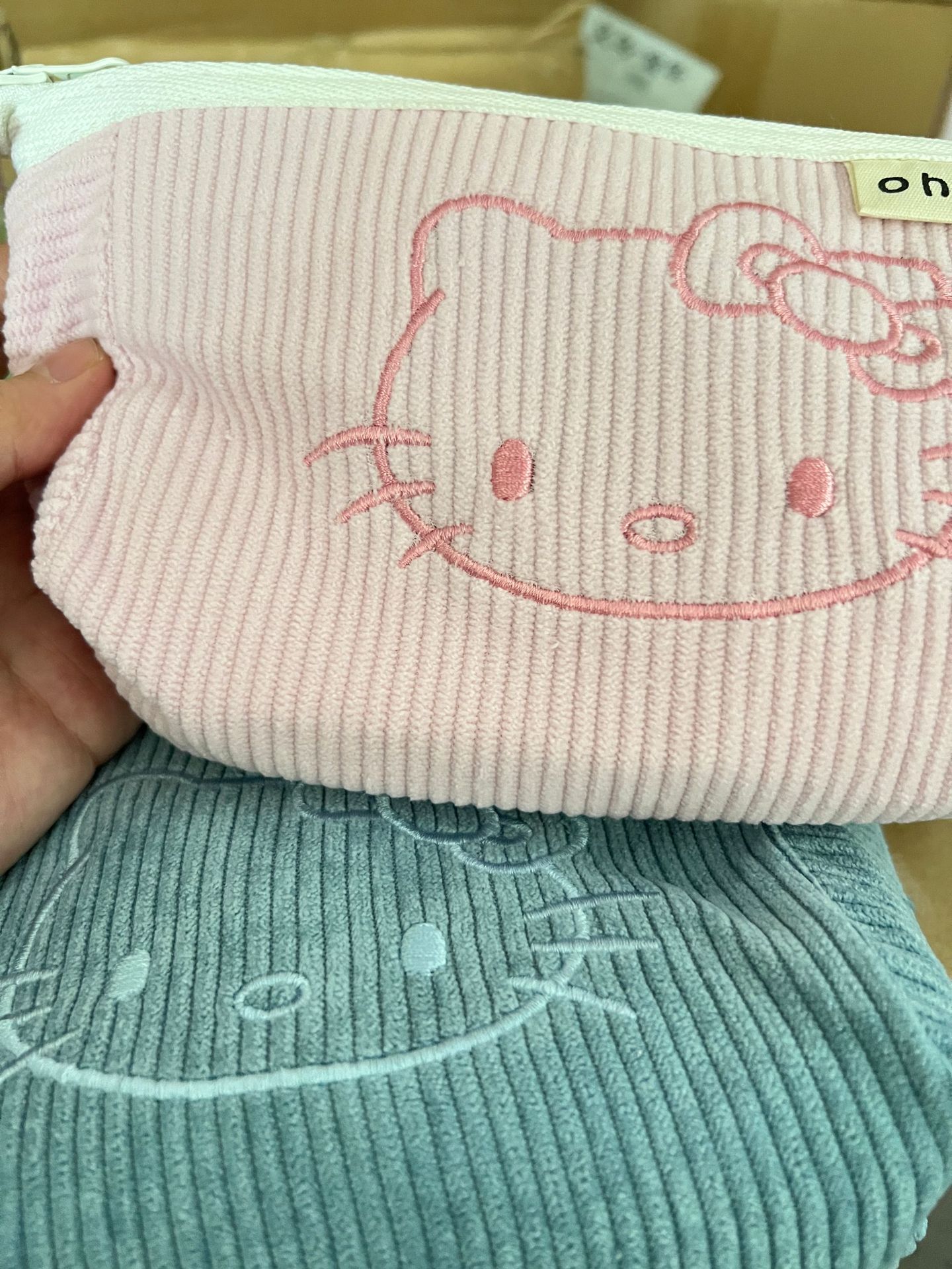 헬로 키티 연필 케이스 소녀 하트 코듀로이 헬로 키티 대용량 문구 보관 가방 데스크탑 마무리 연필 케이스