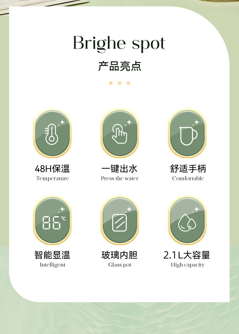 • 지능형 온도 표시 [작은 검은 고양이] 모란디 그린 2.0L - 강력한 보온 + 방진 스파우트