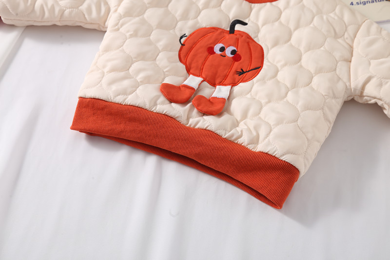 가을과 겨울 2024 새로운 한국 스타일 어린이 착용 호박 만화 두 조각 가을과 겨울 긴팔 남성 및 여성 세트