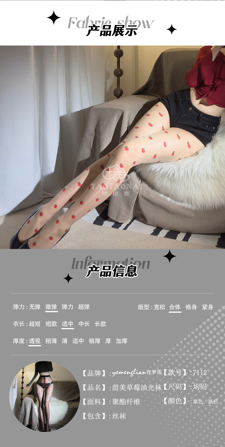 섹시한 실크 스타킹 순수한 욕망 딸기 프린트 오로라 오일 밝은 팬티 스타킹 여성의 섹시한 오픈 크로트 유혹 블랙 실크 울트라 얇은 7112