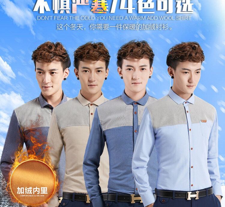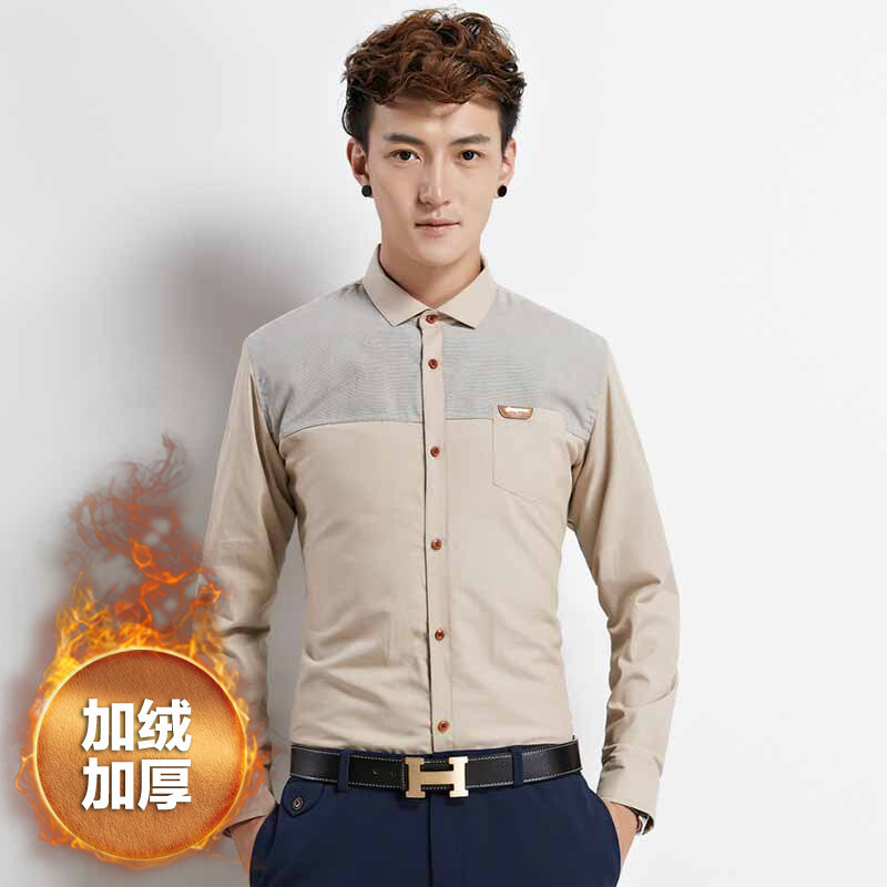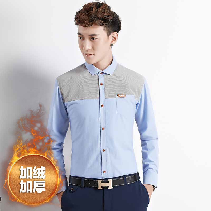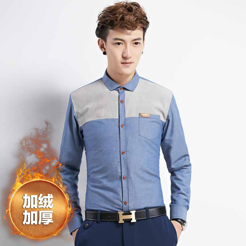 가을과 겨울 기모 긴팔 셔츠 남성용 셔츠 모조 데님 슬림핏 한국 유행 잘 생긴 비즈니스 캐주얼 두꺼운 탑 옷스토어 가기