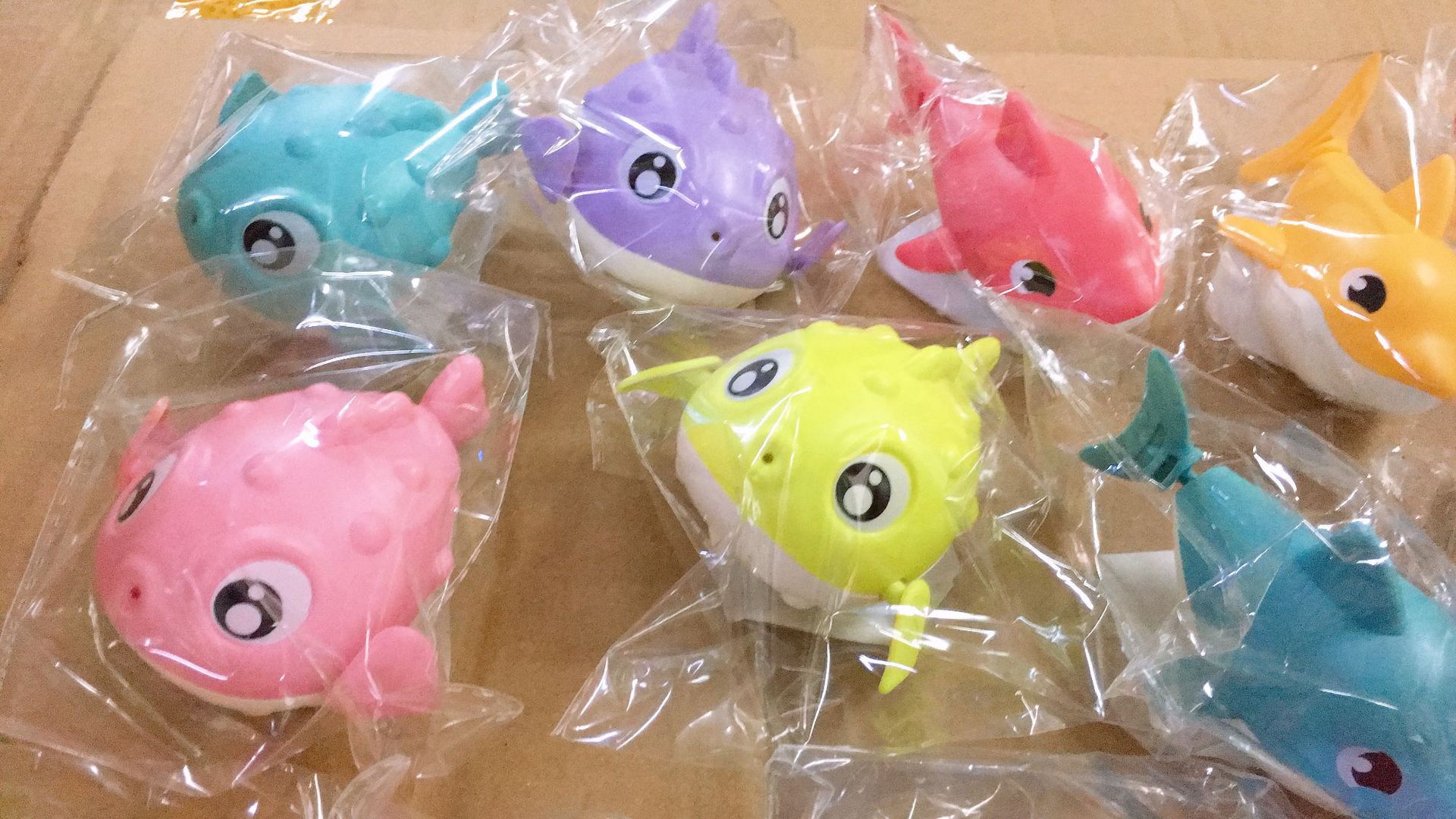국경 간 아기 목욕 놀이 물 감기 체인 동물 욕실 상어 복어 물고기 노란 오리 놀이 물 어린이 장난감 도매스토어 가기