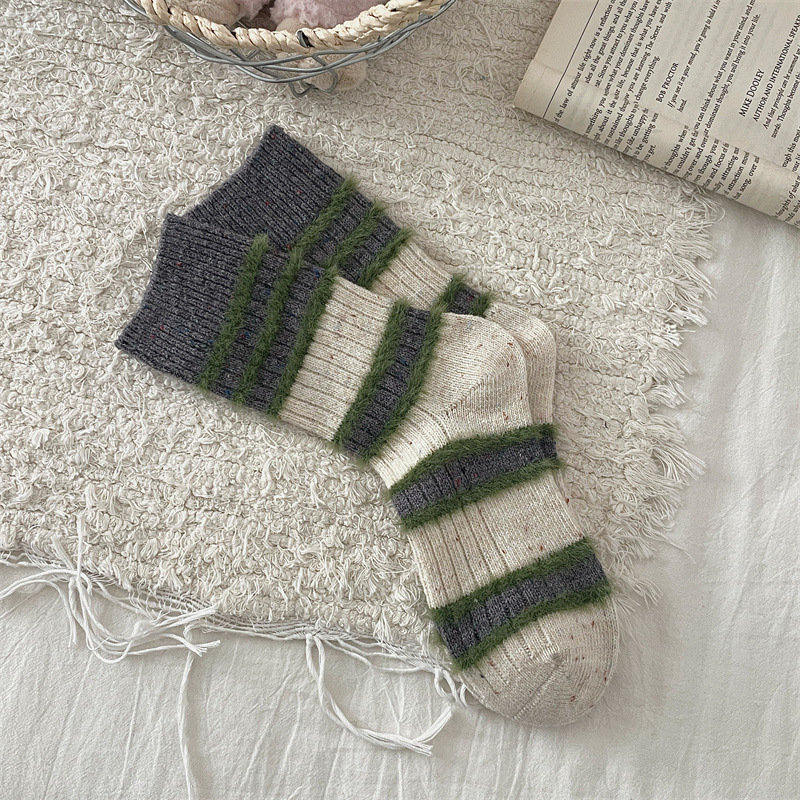 가을과 겨울 두꺼운 따뜻한 양말 여성 한국 스타일 캐시미어 도트 원사 중간 양말 핑크 컬러 스플 라이스 밍크 양털 줄무늬 양말