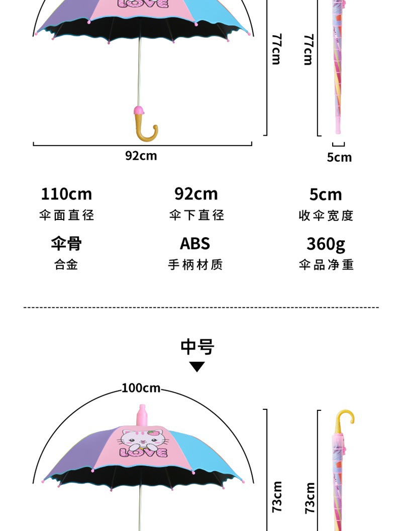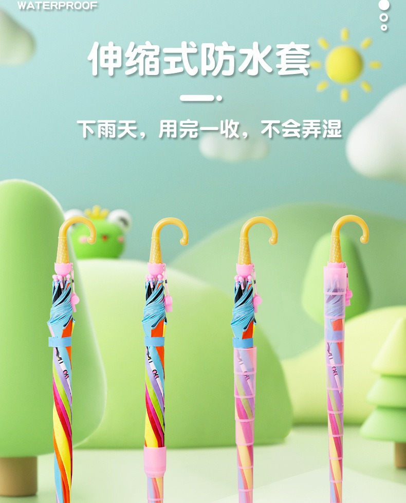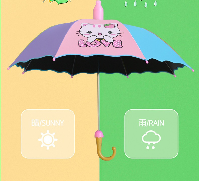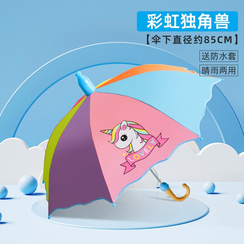 무지개 고양이 어린이 우산 유치원 방수 커버 아기 스트레이트 우산 만화 패턴 어린이 우산