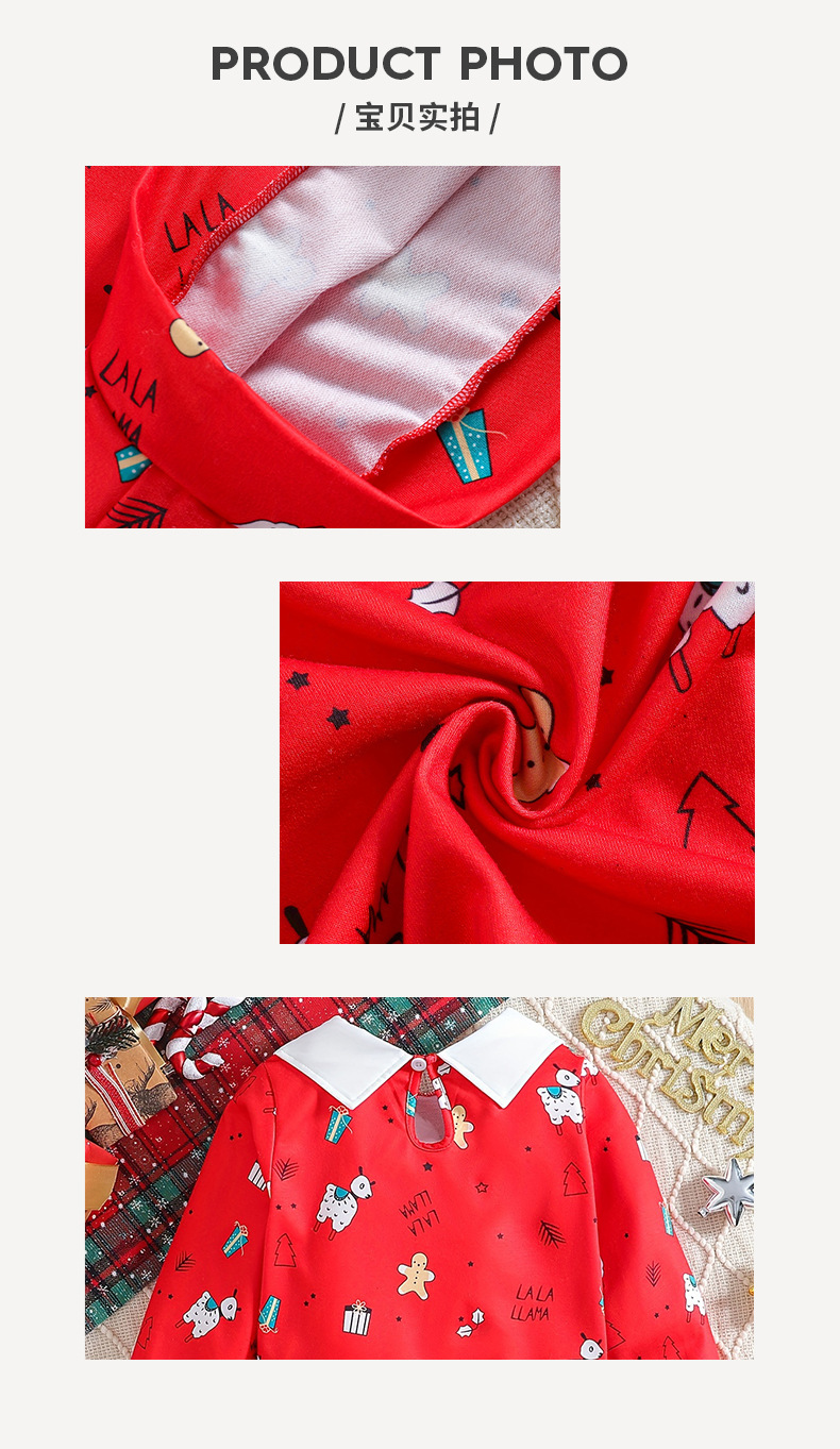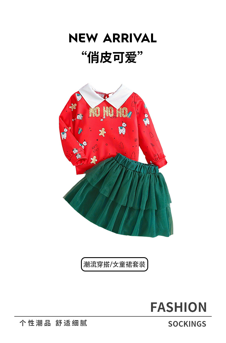 국경 간 크리스마스 어린이 세트 빨간 옷깃 스웨터 만화 인쇄 2 층 거즈 메쉬 케이크 스커트 휴일 소녀의 치마