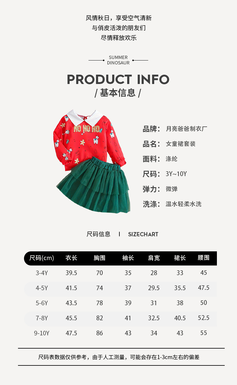 국경 간 크리스마스 어린이 세트 빨간 옷깃 스웨터 만화 인쇄 2 층 거즈 메쉬 케이크 스커트 휴일 소녀의 치마스토어 가기