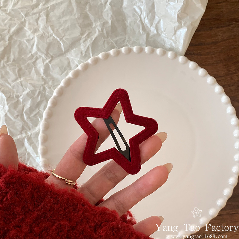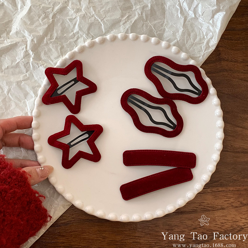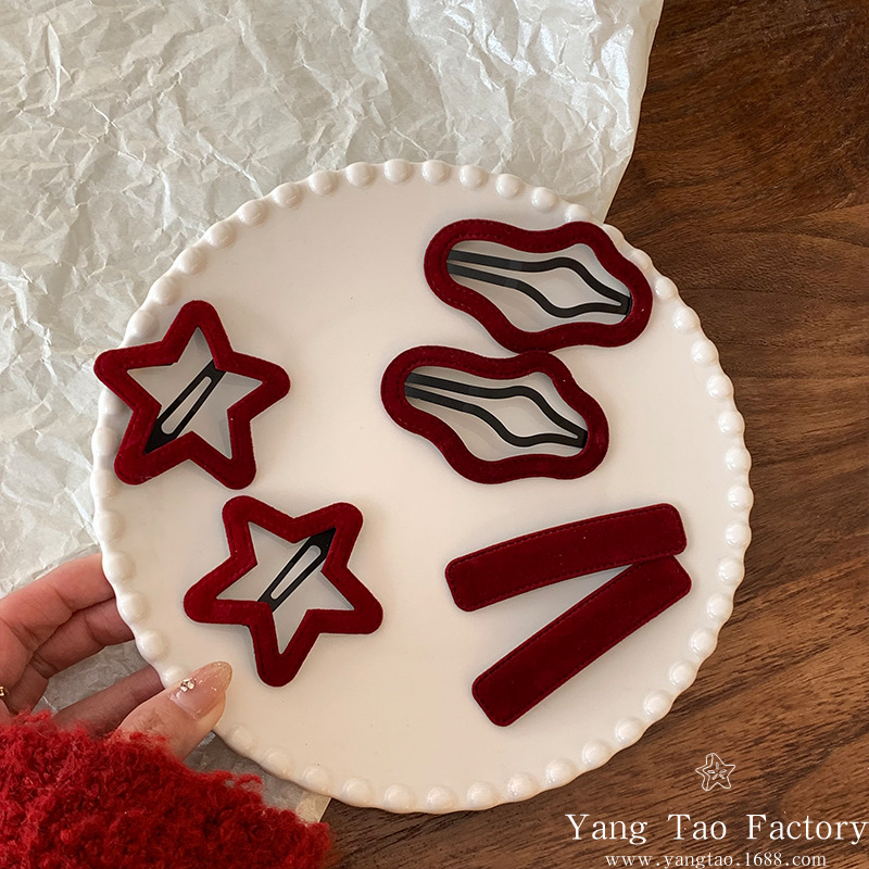 새해 레드 사이드 스위트 트래리스 뱅 깨진 헤어핀 사이드 클립 구름 5 점 스타 BB 클립 한 단어 클립 헤드웨어