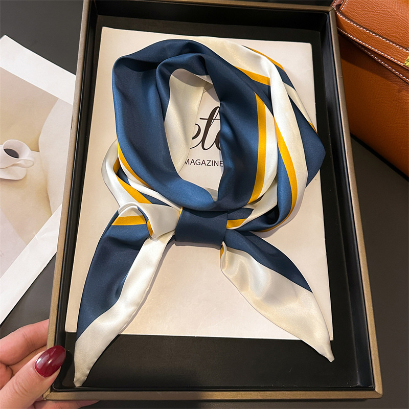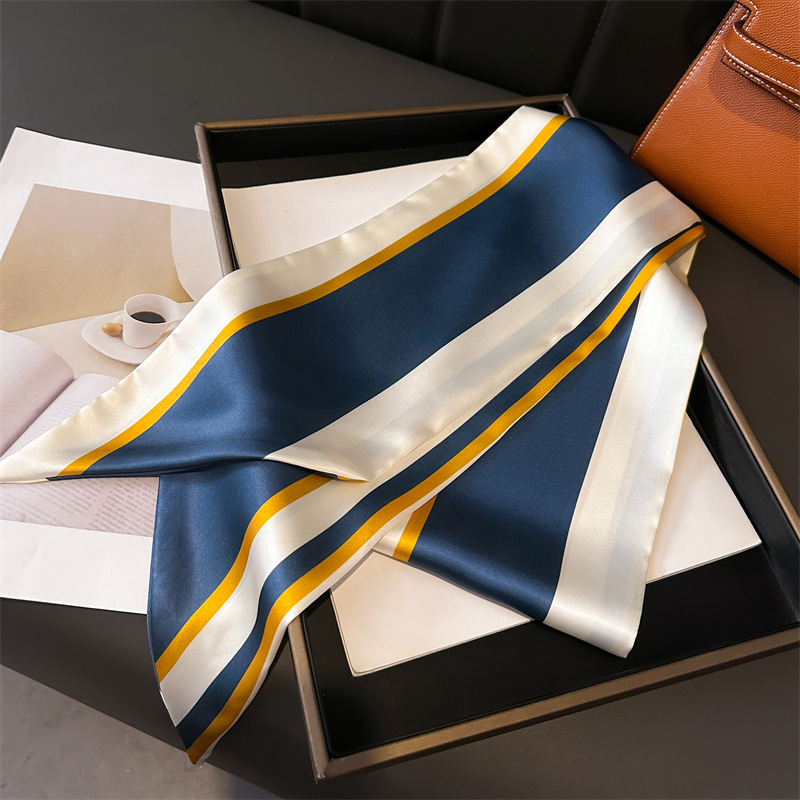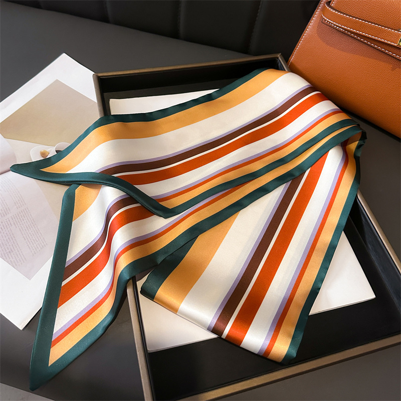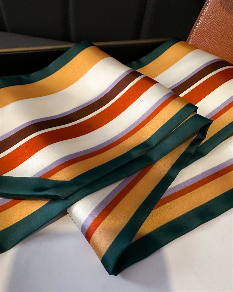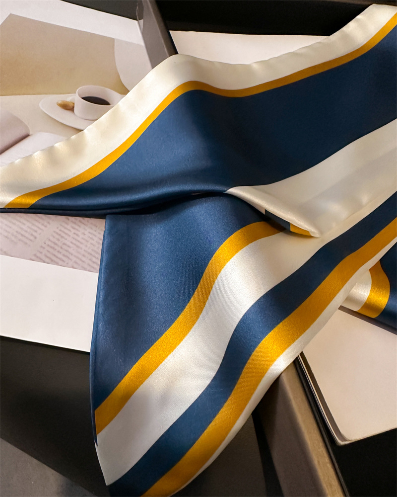 새로운 기하학적 줄무늬 스카프 패션 장식 스카프 통근 우아한 봄과 여름 비스듬한 스카프 올 매치 얇은 리본