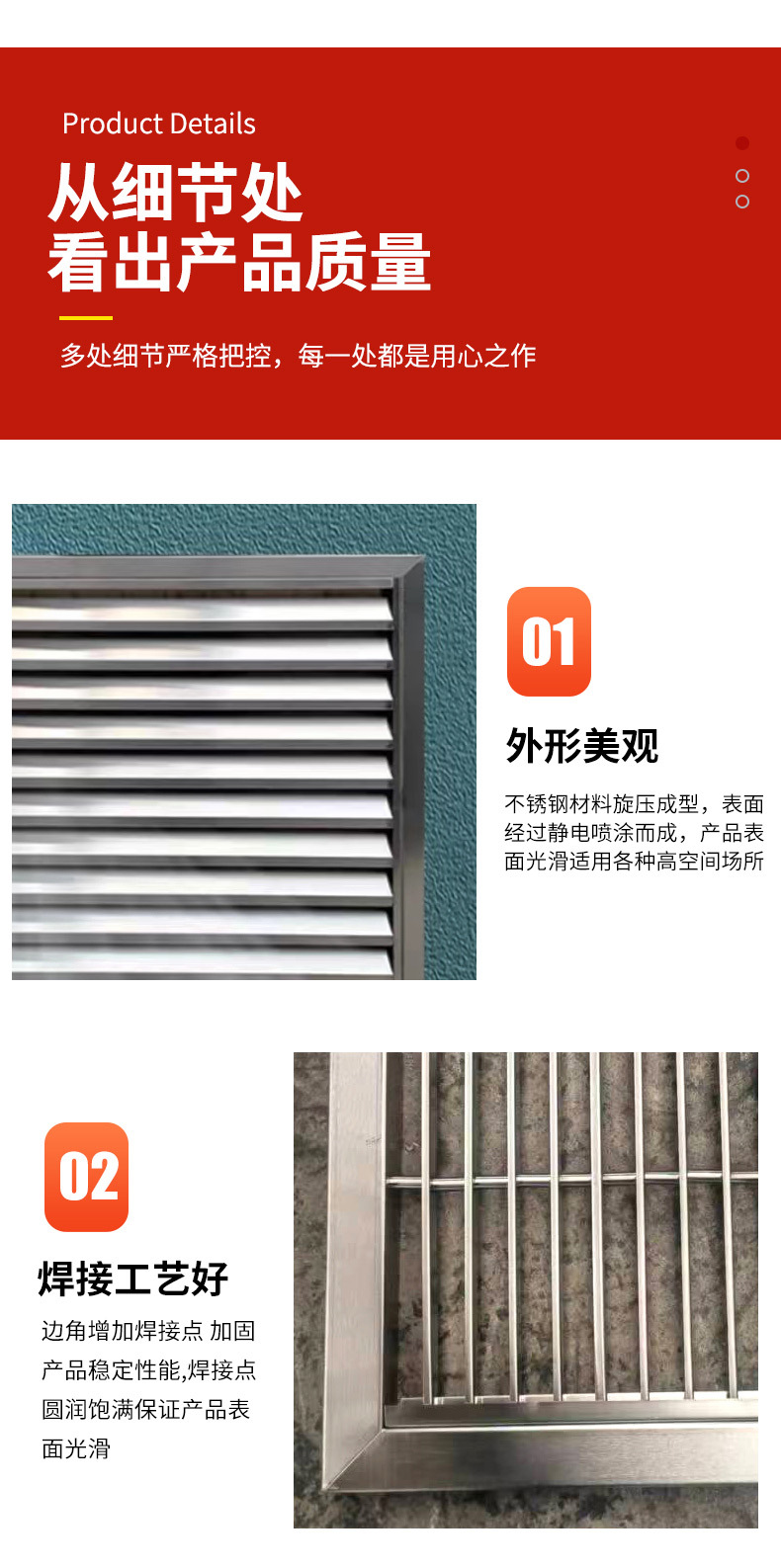 304 스테인레스 스틸 공기 배출구 중앙 에어컨 환기 및 냉각 공기 배출구 욕실 방수 단일 및 이중 블라인드