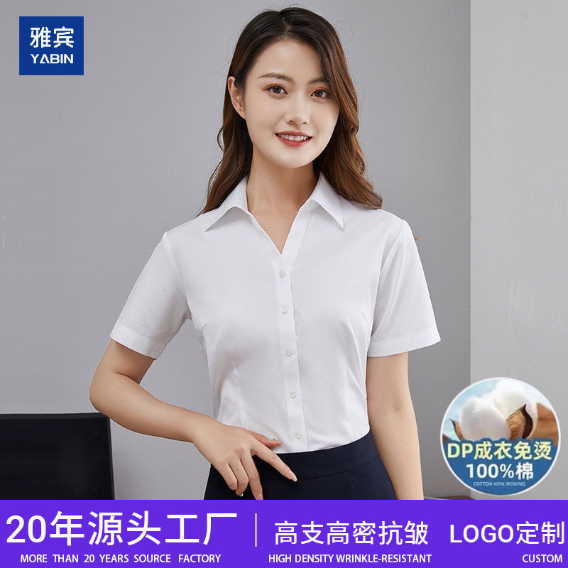 면 반팔 여성용 화이트 셔츠 여성 하이 엔드 비즈니스 캐주얼 DP 리드 의류 비 다림질 슬림 핏 코튼 화이트 셔츠스토어 가기