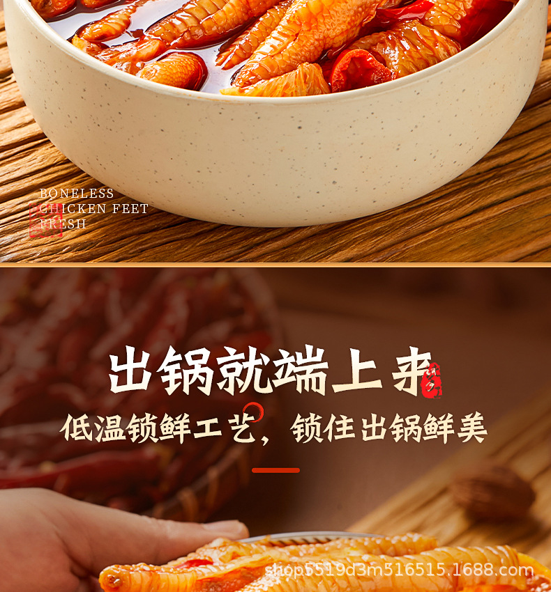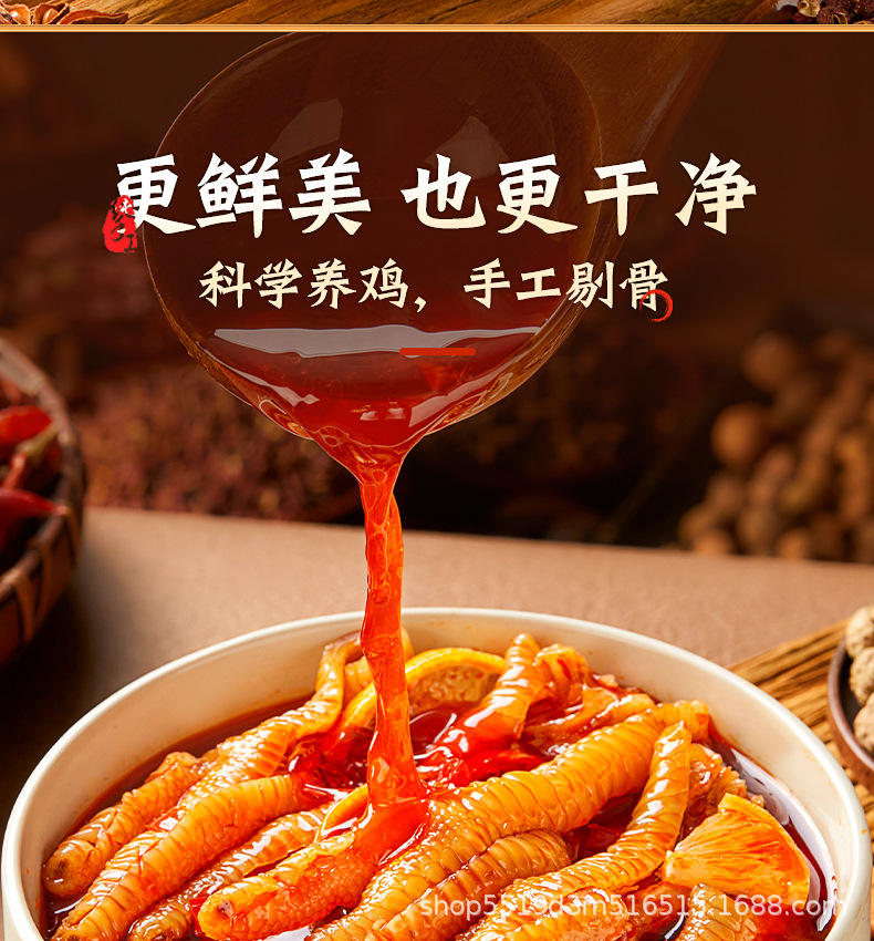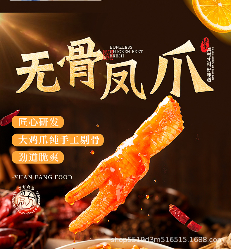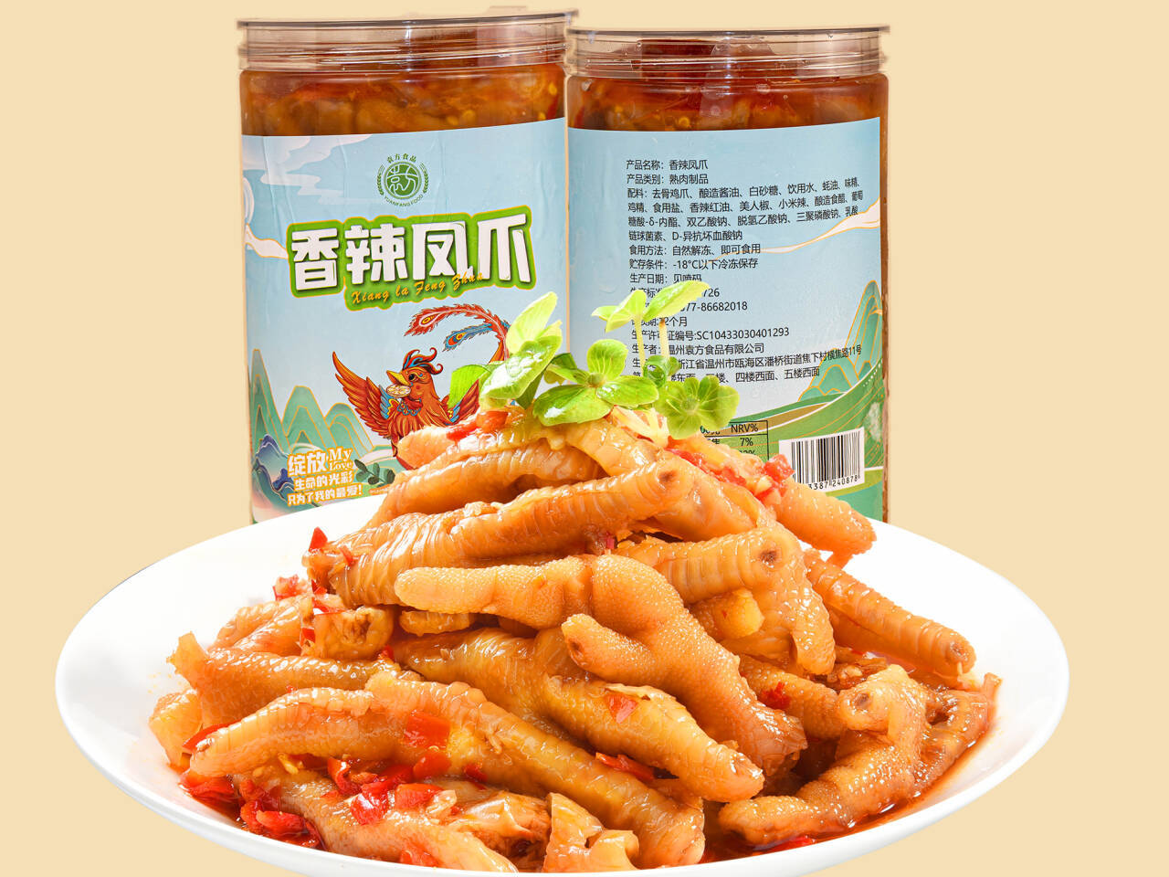 Yuan Fang 뼈없는 치킨 발톱 작은 패키지 그물 인기있는 인스턴트 오픈 백 스톨 시트르산 매운 치킨 클로 절인 와인과 야채 스낵스토어 가기