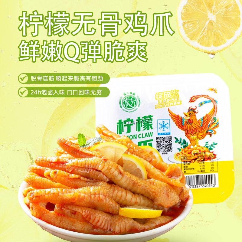 Yuan Fang 뼈없는 치킨 발톱 작은 패키지 그물 인기있는 인스턴트 오픈 백 스톨 시트르산 매운 치킨 클로 절인 와인과 야채 스낵