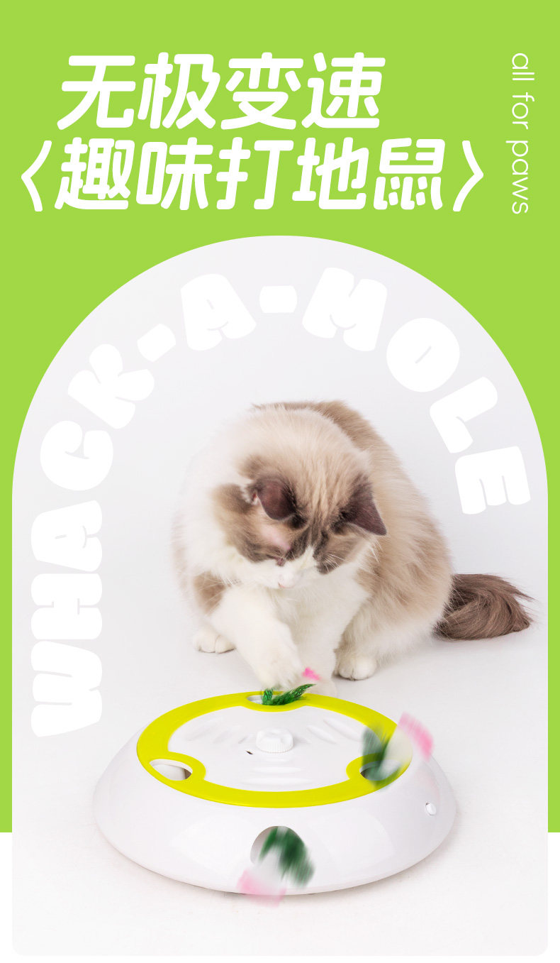 AFP 스마트 고양이 장난감 전동 변속 두더지 잡기 기계 충전식 자가 놀이 완구 고양이 장난감 교체용 헤드 3개 포함스토어 가기