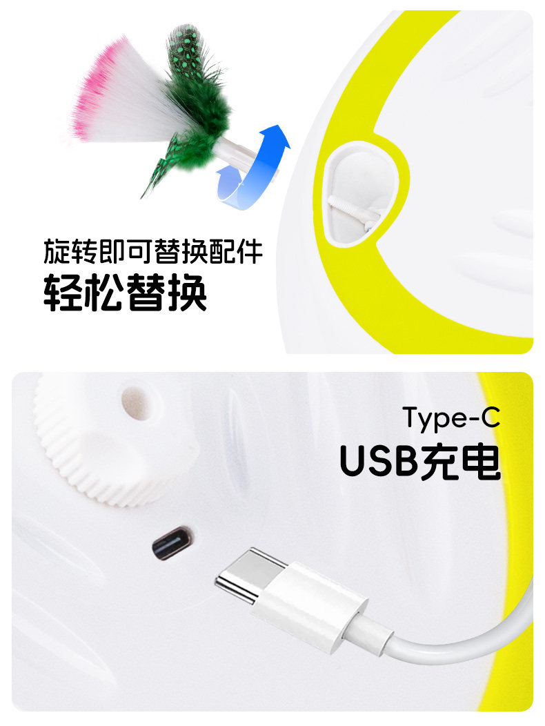 AFP 스마트 고양이 장난감 전동 변속 두더지 잡기 기계 충전식 자가 놀이 완구 고양이 장난감 교체용 헤드 3개 포함