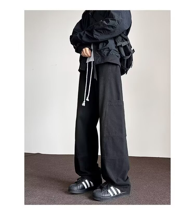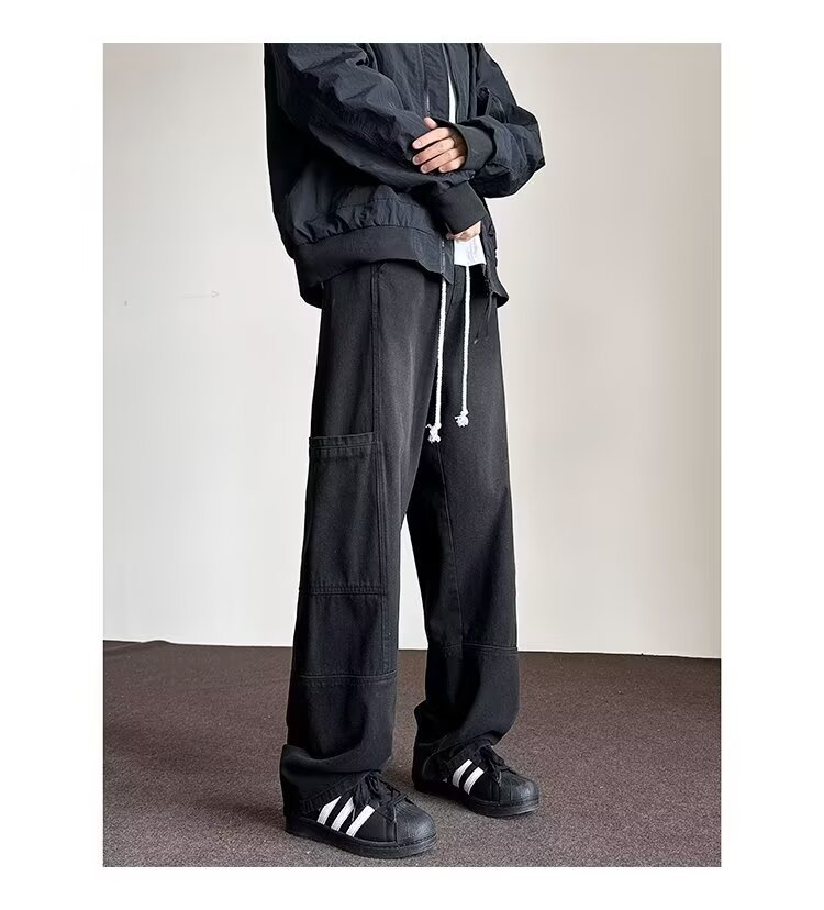 아메리칸 레트로 툴링 청바지 남성 패션 브랜드 가을 하이 스트리트 바이브 바지 디자인 센스 루즈 스트레이트 와이드 다리 바지스토어 가기