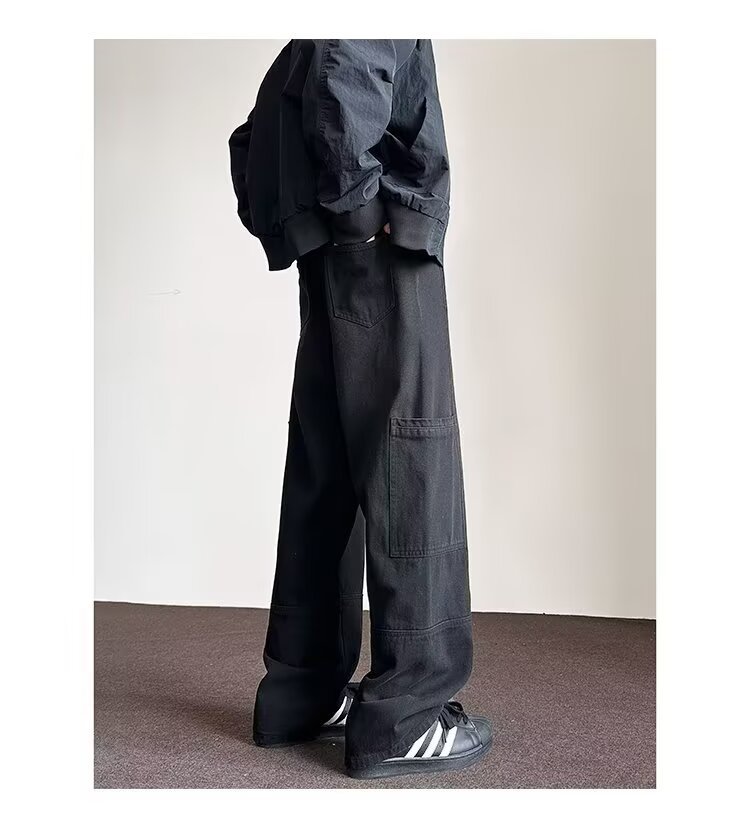 아메리칸 레트로 툴링 청바지 남성 패션 브랜드 가을 하이 스트리트 바이브 바지 디자인 센스 루즈 스트레이트 와이드 다리 바지
