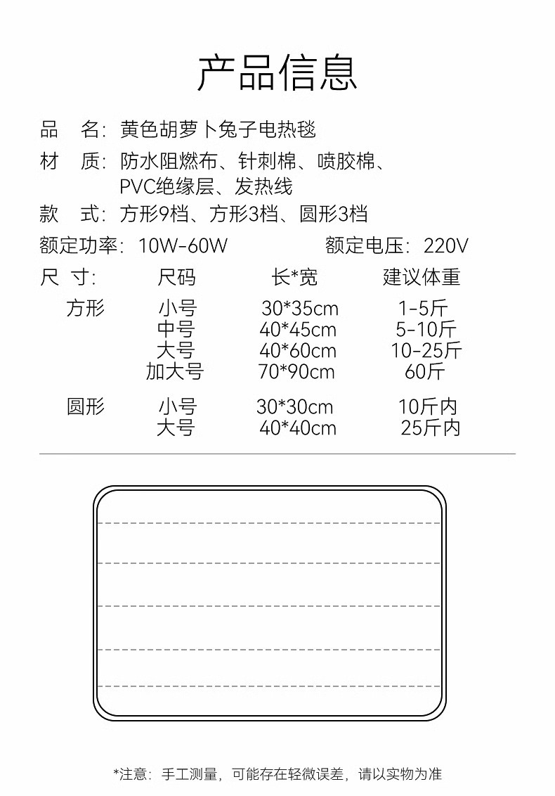 당근 토끼 개 가을, 겨울 따뜻한 전기 담요 일정한 온도 가열 고양이 전기 매트리스 겨울 애완 동물 용품스토어 가기