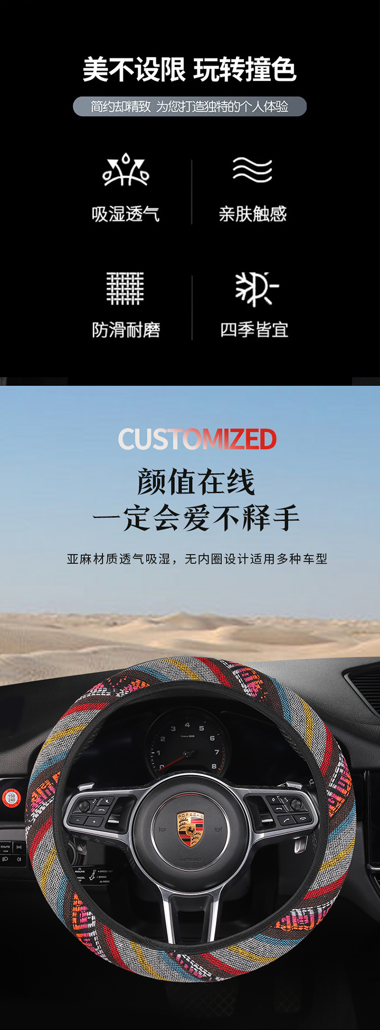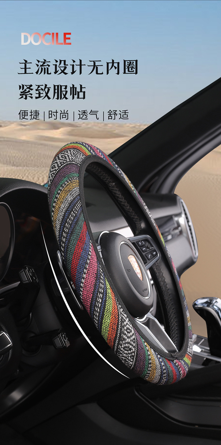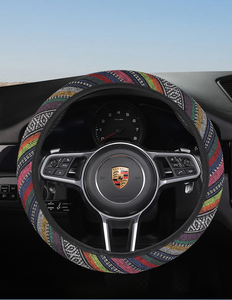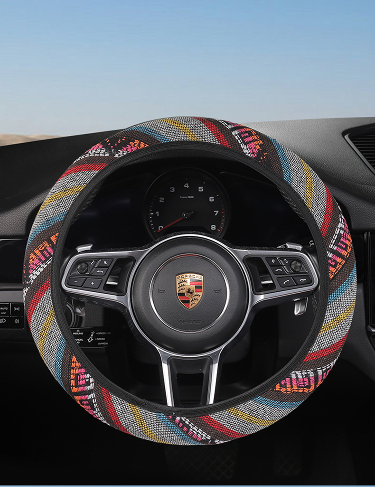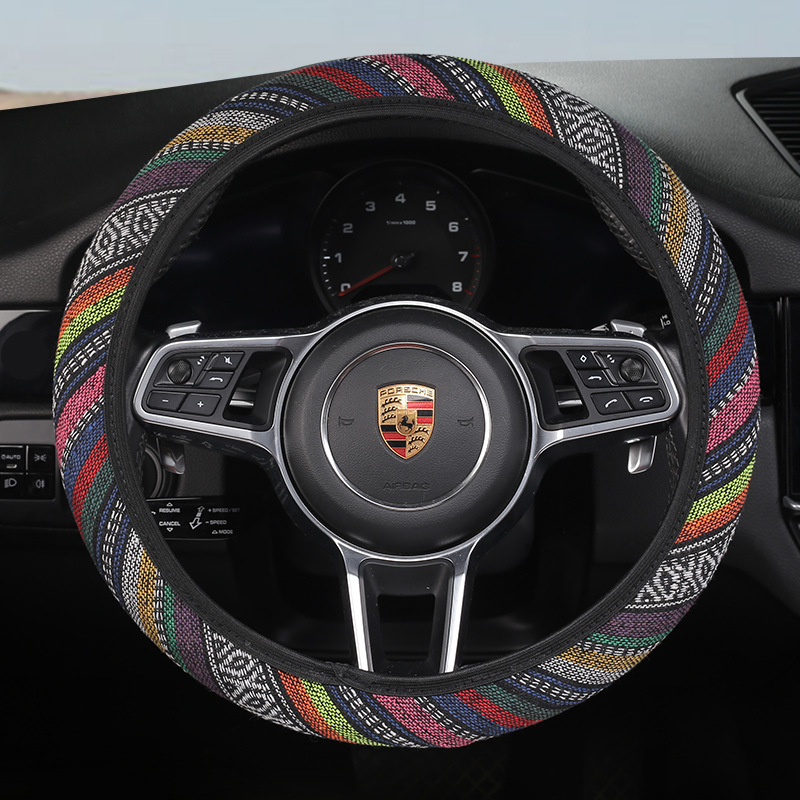 새로운 스티어링 휠 커버 국가 스타일 4 색 자동차 핸들 커버 사계절 유니버설 패션 분위기 땀 흡수성 미끄럼 방지 스티어링 휠 커버
