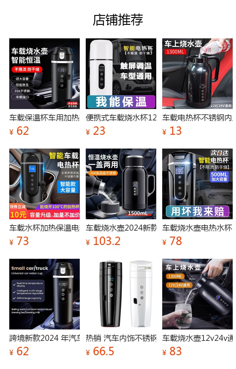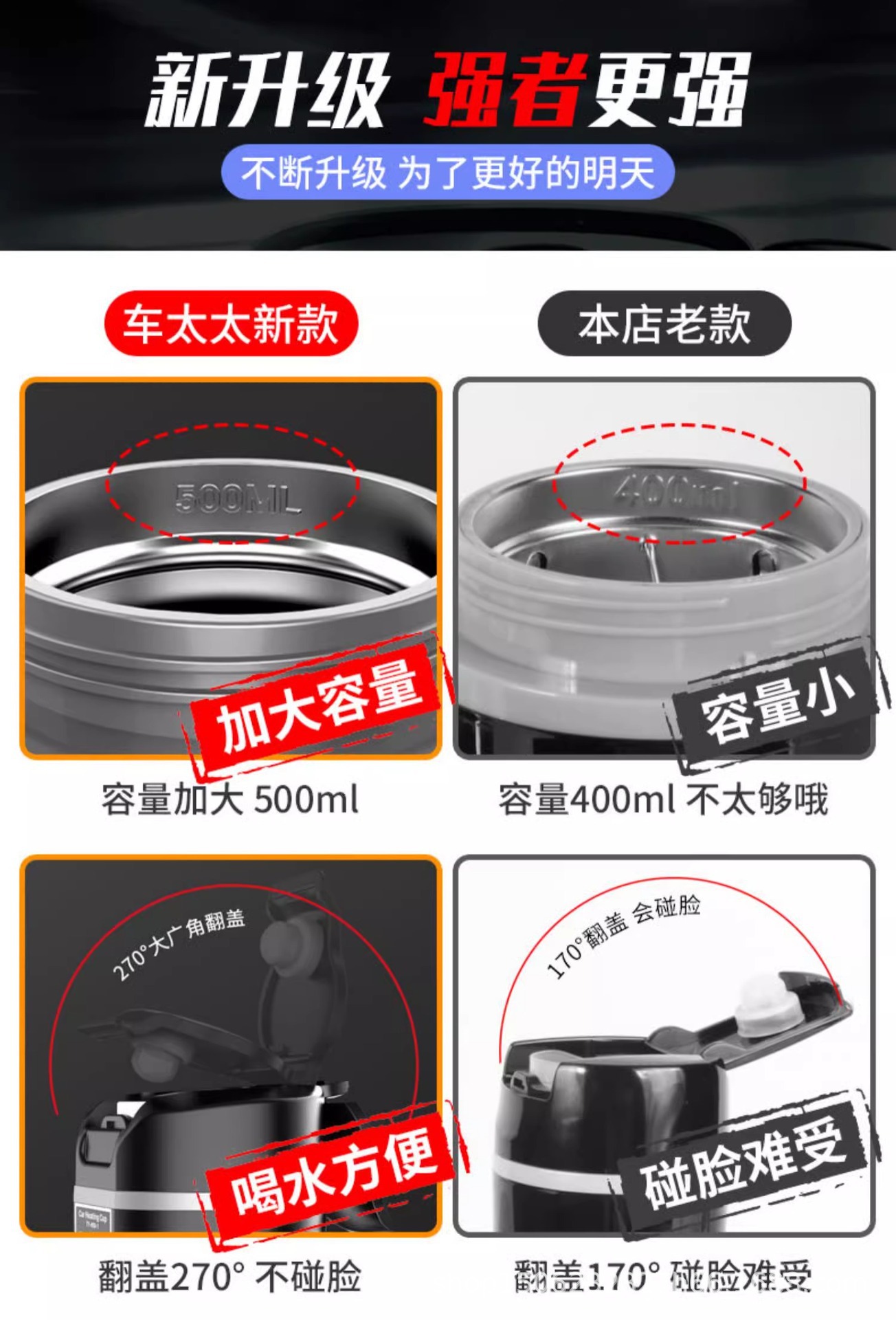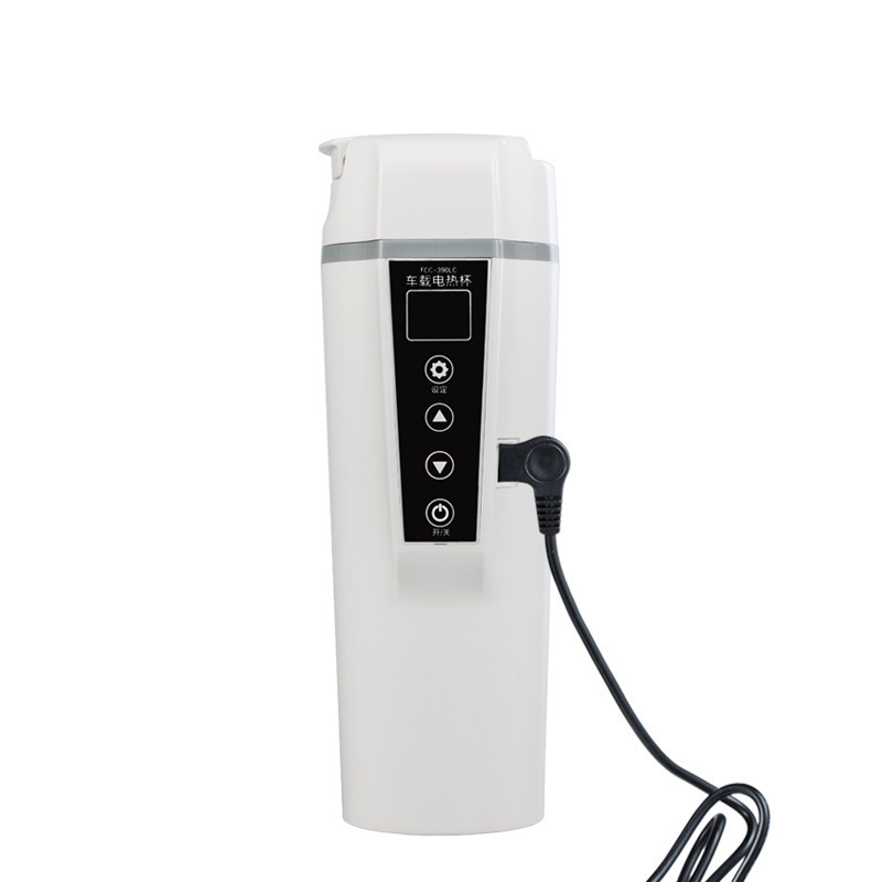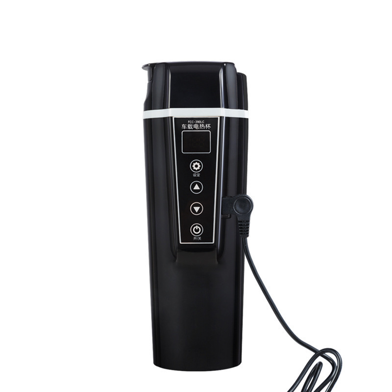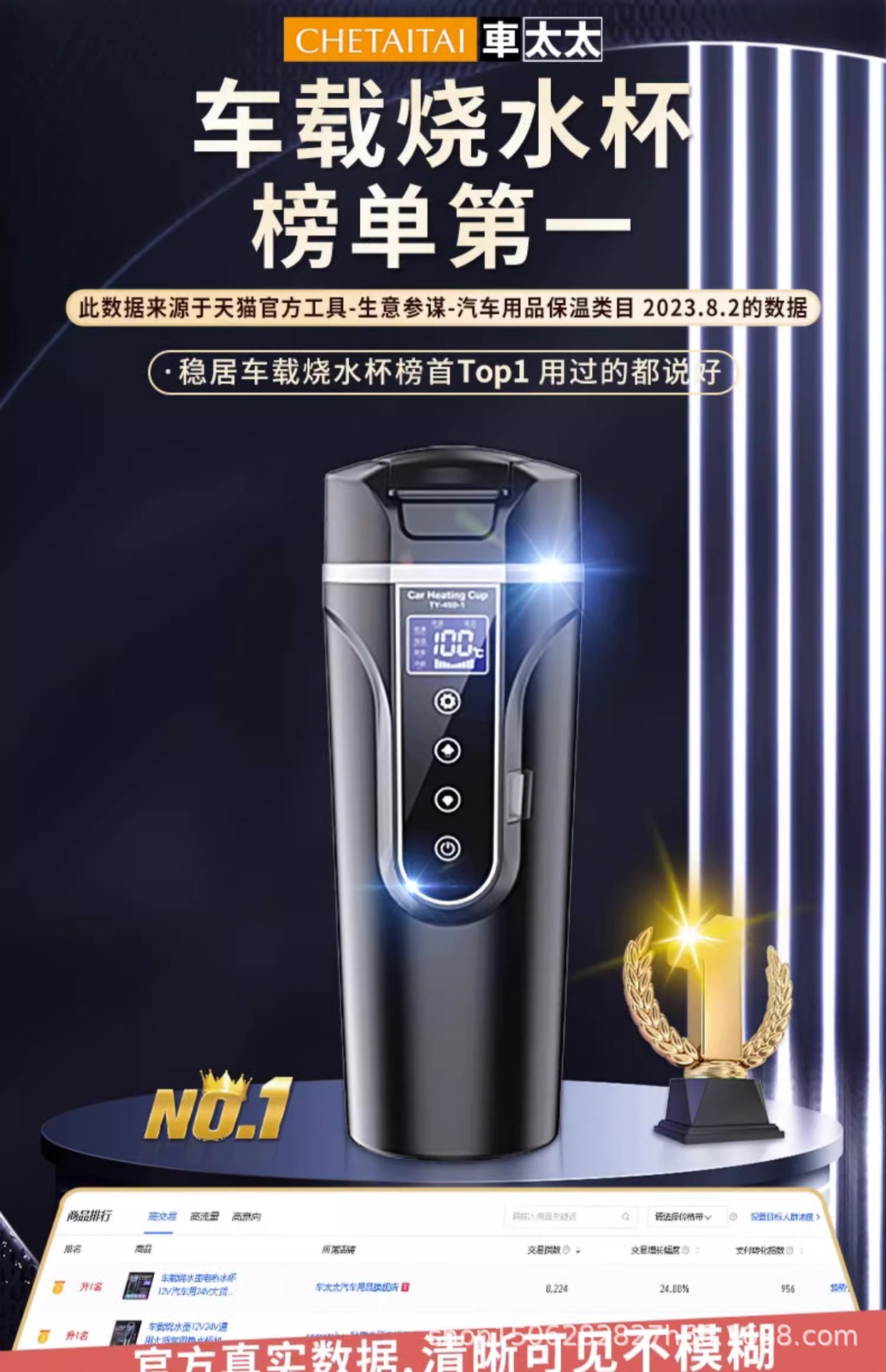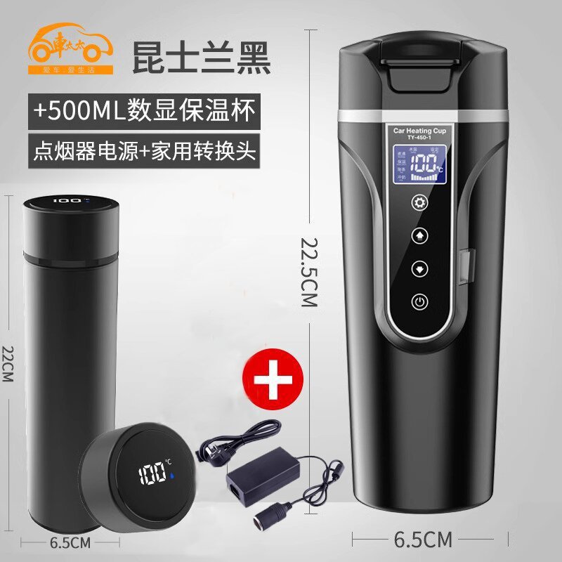 【新款智能车载电热杯】一体式防漏水设计不漏水断电也可保温5-7小时,可控恒温四大功能(煮沸、保温、沏茶、冲奶),智能识别12V/24V电压通用(轿车12V货车24V),智能降压解决有电流保护的车型不能使用问题,睿智黑和雅典白双色可选杯身手感极佳,杯盖可上翻270°让喝水更方便使用更安全,全新科技触摸有声按键。高清液晶显示屏,烧开自动报警停止加热,电源口位于杯身中间侧面完美解决老款放杯架电源线拥挤占空间的难题,底部防滑设计,水杯配带茶漏,还可选配车家两用款让您在家及酒店宾馆也能享受健康干净的开水哦!
