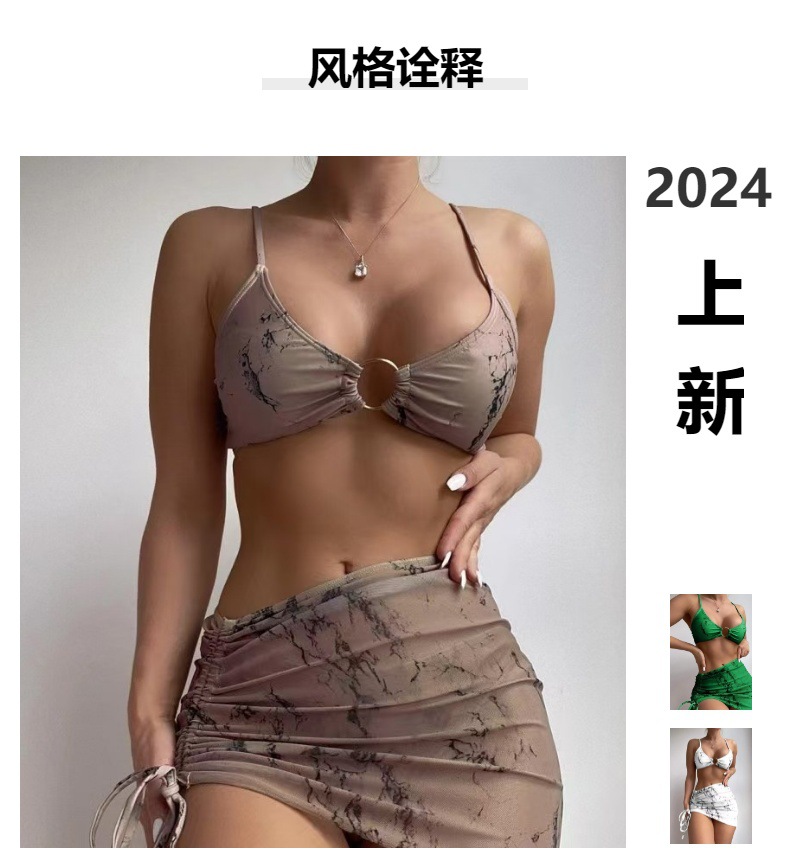 유럽과 미국의 새로운 비키니 분할 수영복 여성 3 피스 수영복 대리석 인쇄 비키니 국경 도매