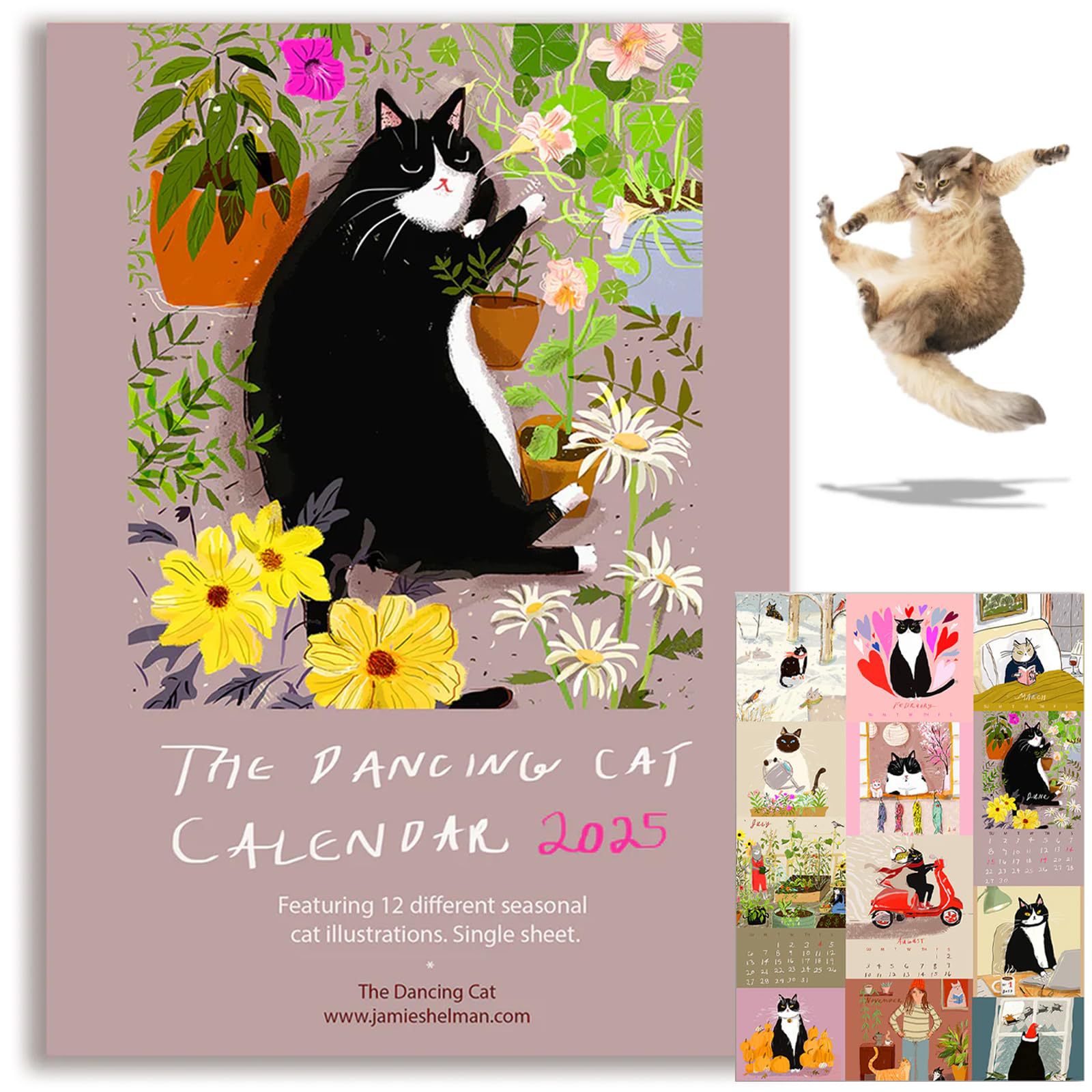 2025 跳舞猫日历:精选 12 种不同的季节性猫咪插图,为您带来新年的欢乐!日历上的插图非常漂亮。明年,您可以将它们剪下来并放在相框中,制作成艺术品