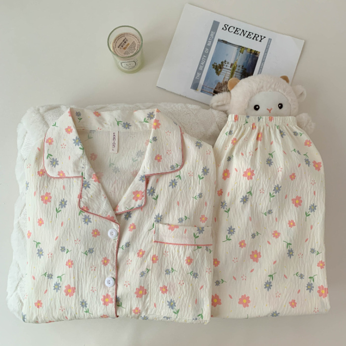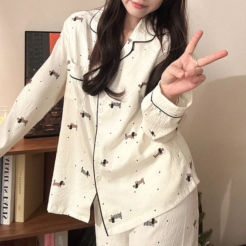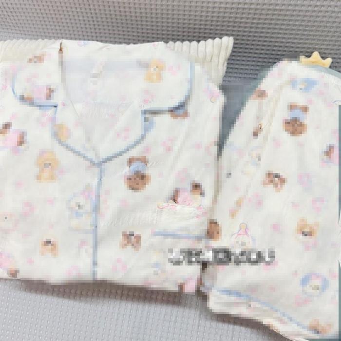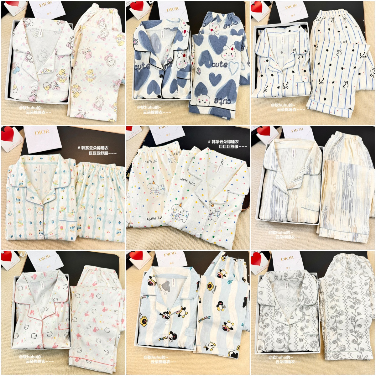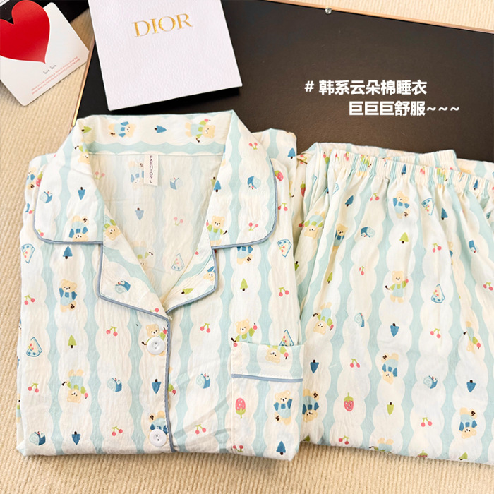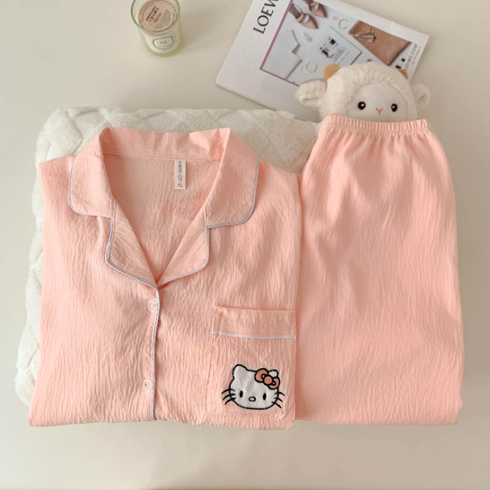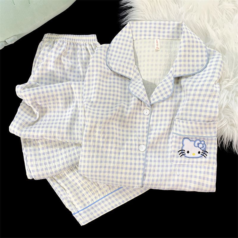 구름면 잠옷 여성 봄과 가을 새로운 귀여운 핑크 격자 무늬 헬로 키티 카디건 달콤한 소녀 홈 옷스토어 가기