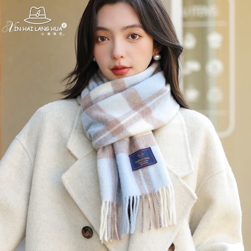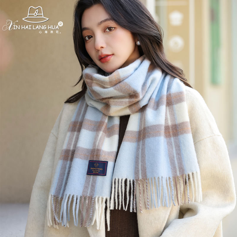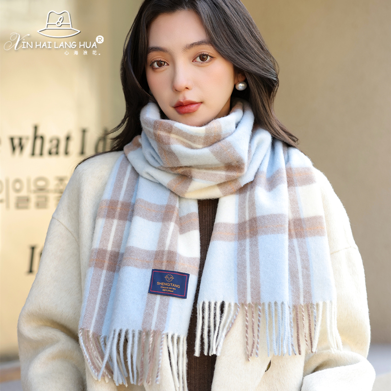 호주 퓨어 울 체크 무늬 스카프 영국 클래식 유니섹스 커플의 가을과 겨울 따뜻한 스카프 고급 감각스토어 가기