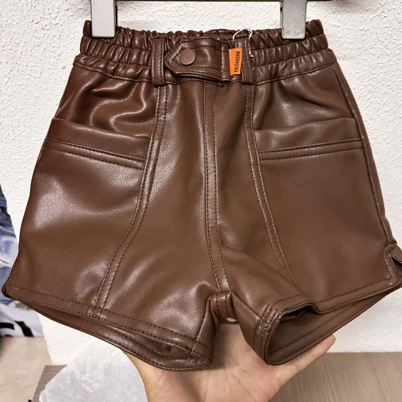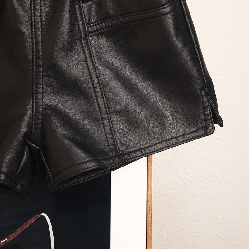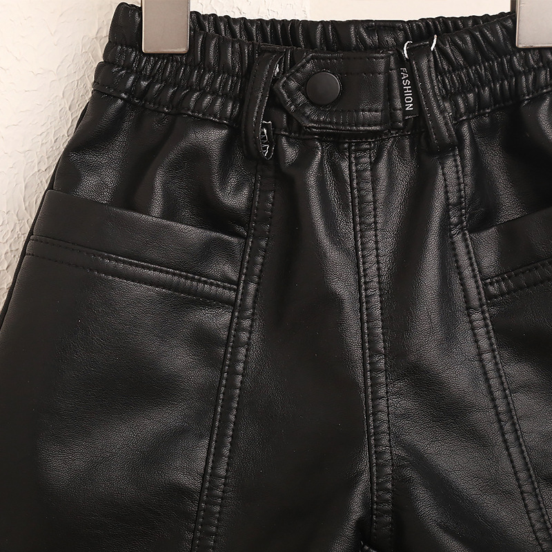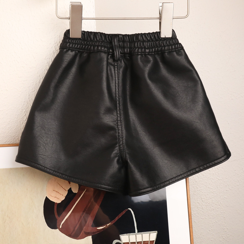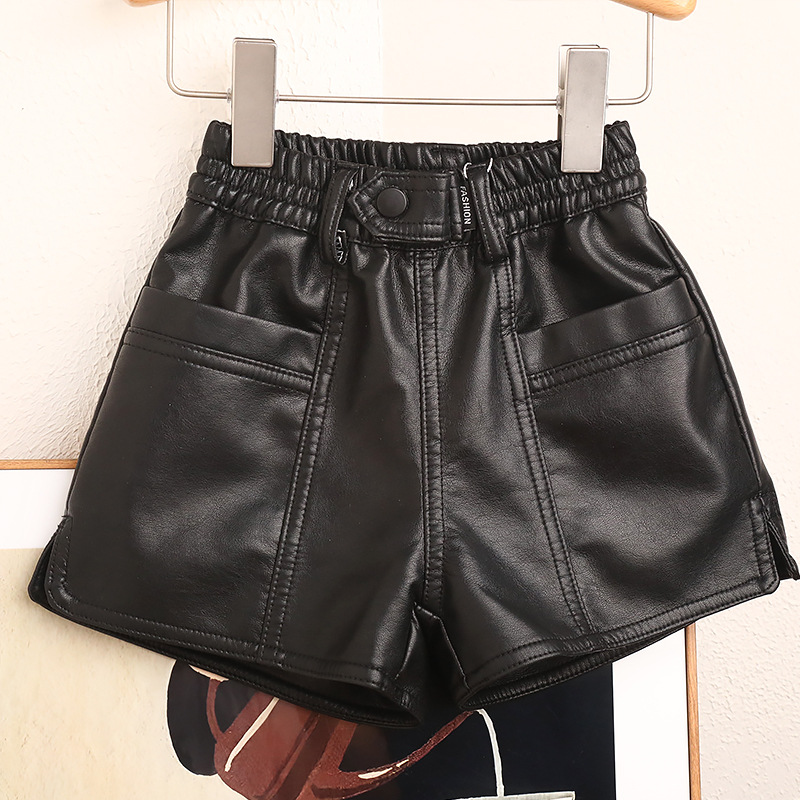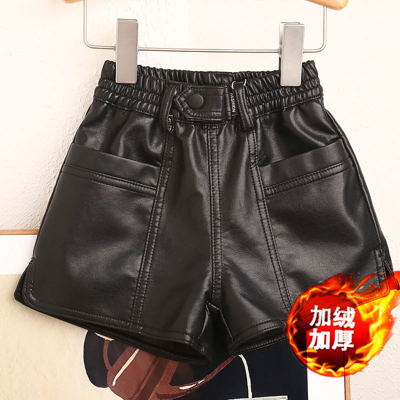 새로운 높은 허리 가을과 겨울 소녀 가죽 반바지 A-모양 넓은 다리 바지 노래 허리 블랙 커피 더블 컬러 기모 두꺼운 부츠 바지스토어 가기