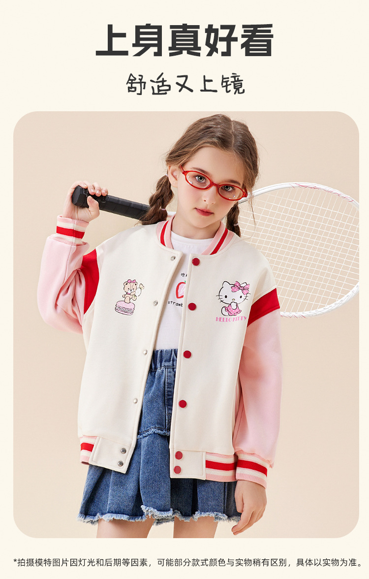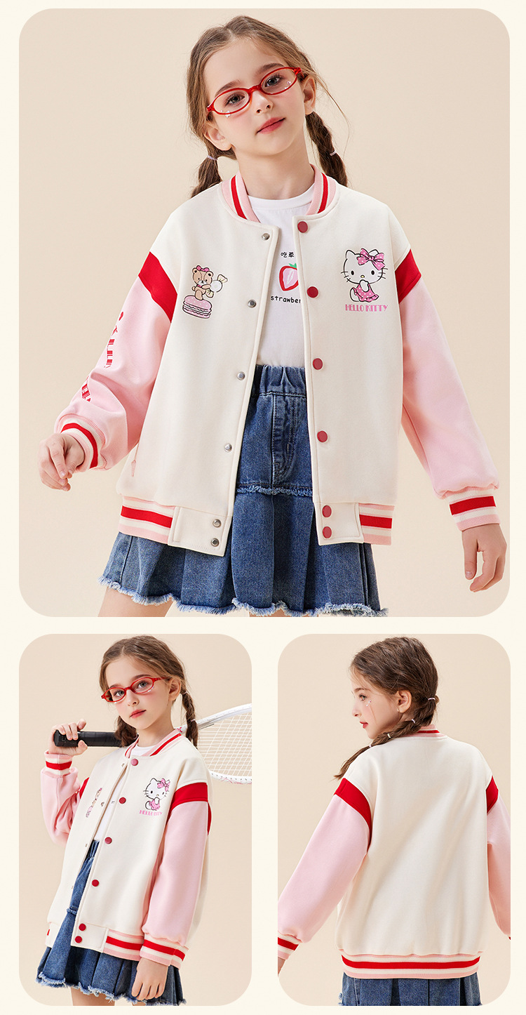 HelloKitty2024 봄 새 아동복 여자 야구 세트 코트 한국 긴 소매 탑스토어 가기