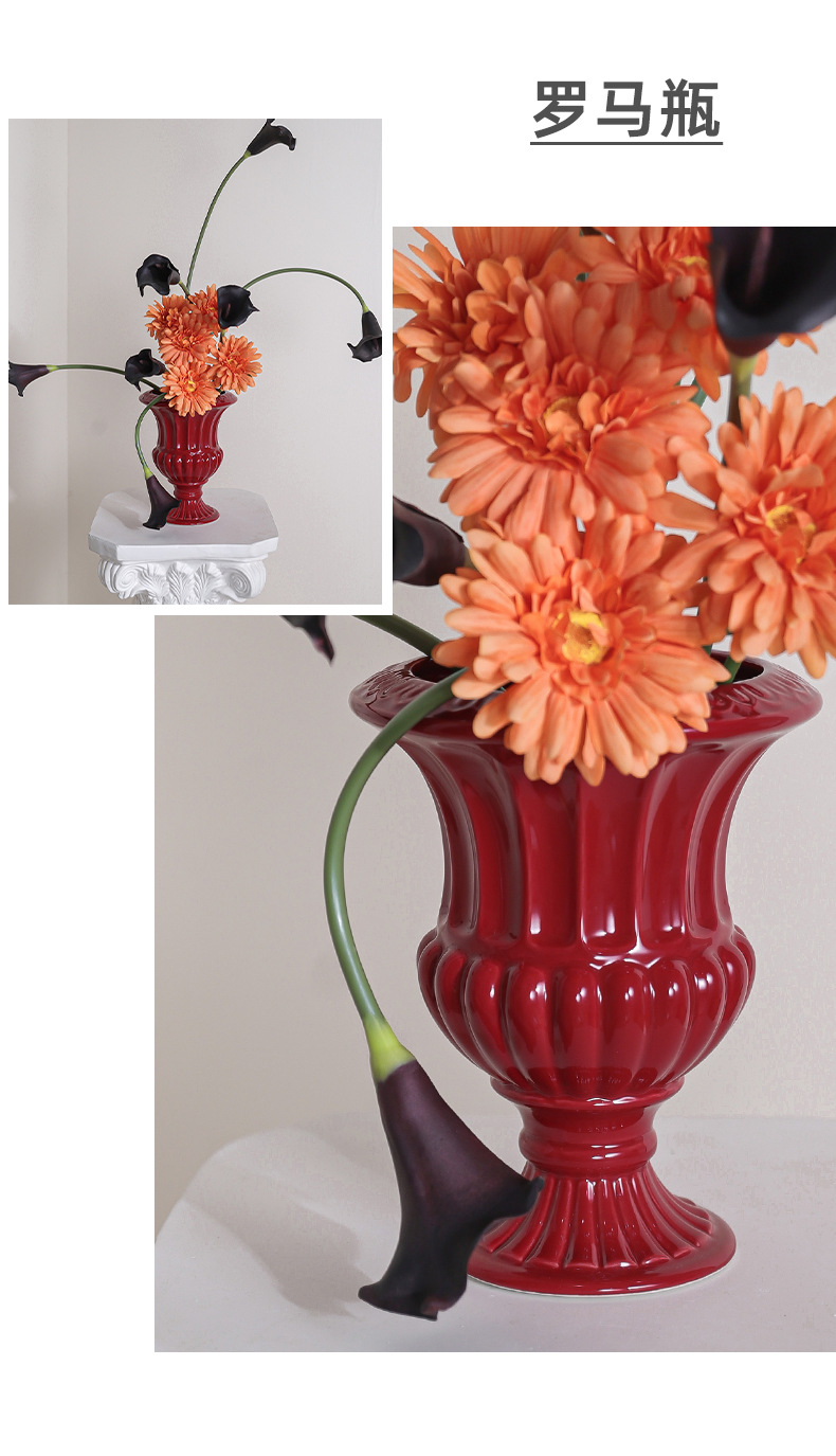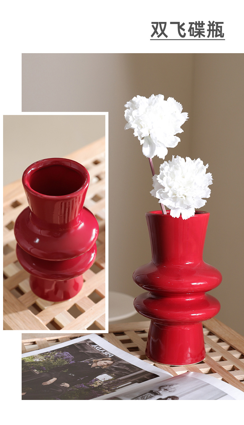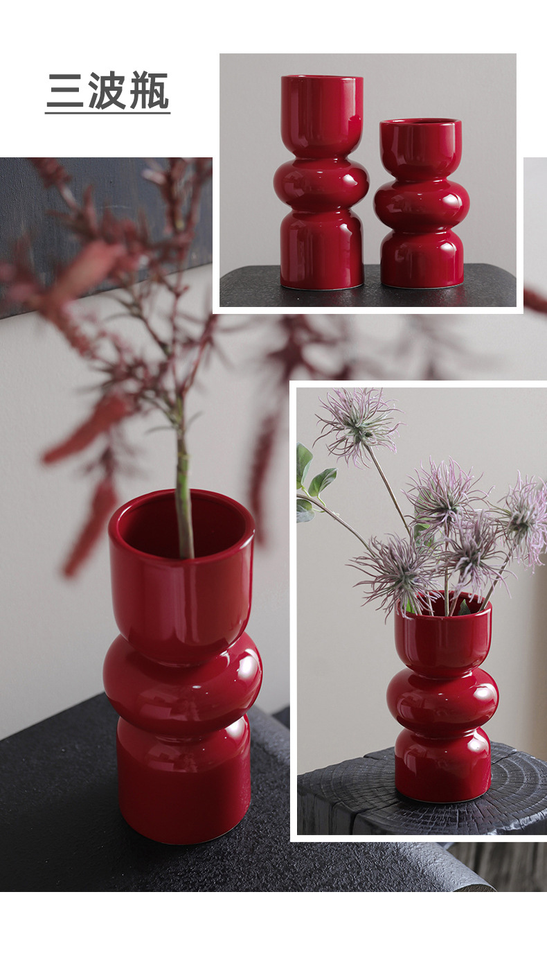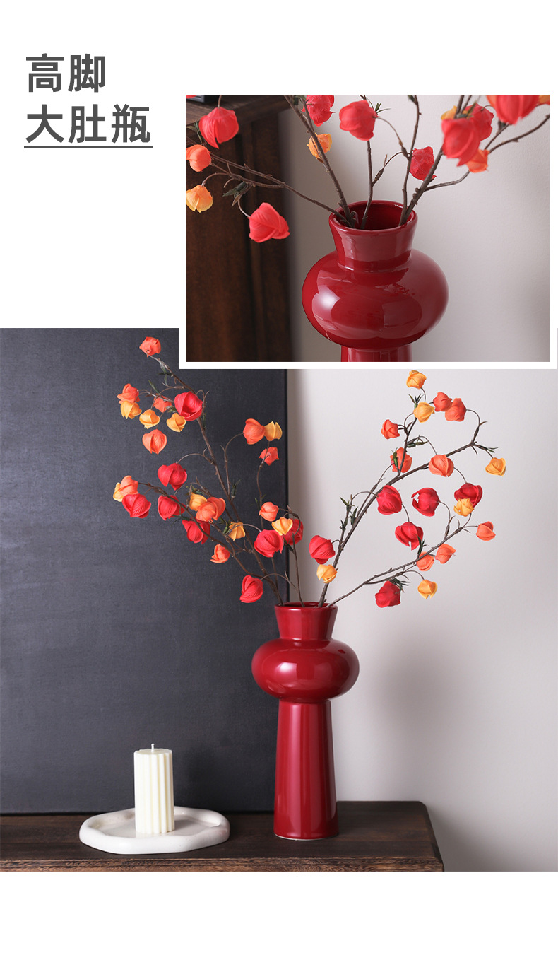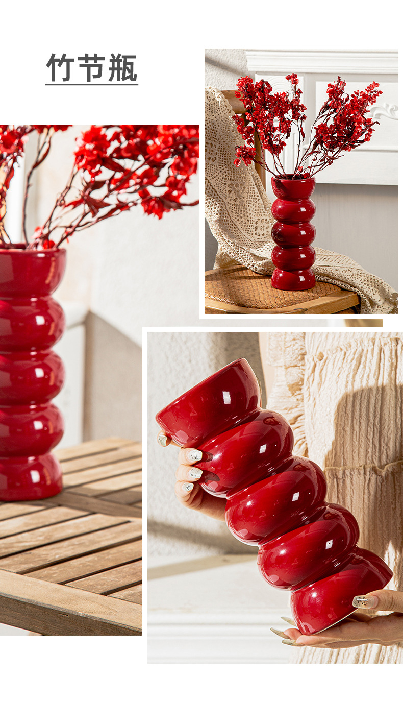 빨간색 꽃병 세라믹 중세 고급 중국 스타일 고가치 결혼식 장식 꽃병 축제 선물 도매스토어 가기