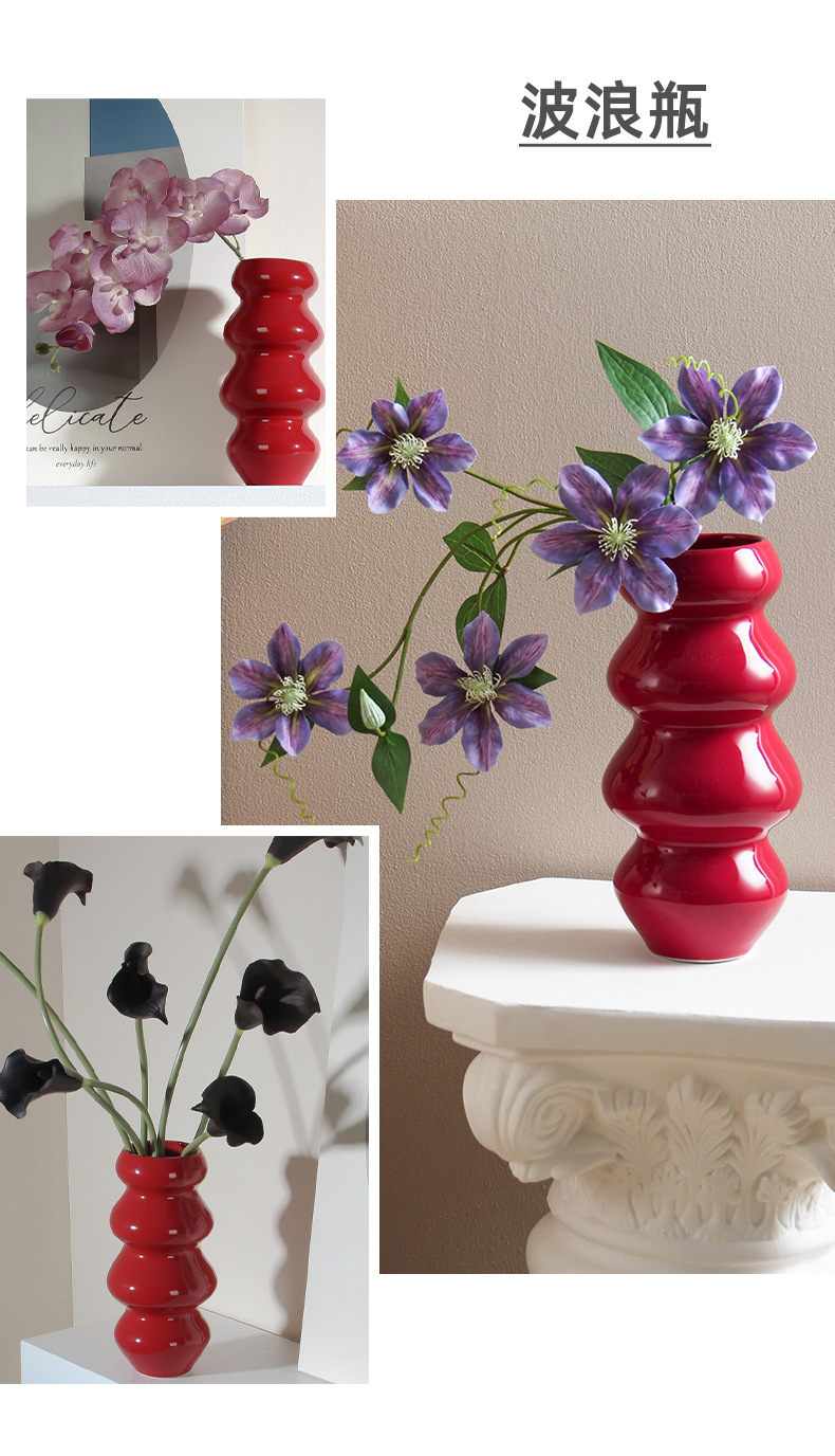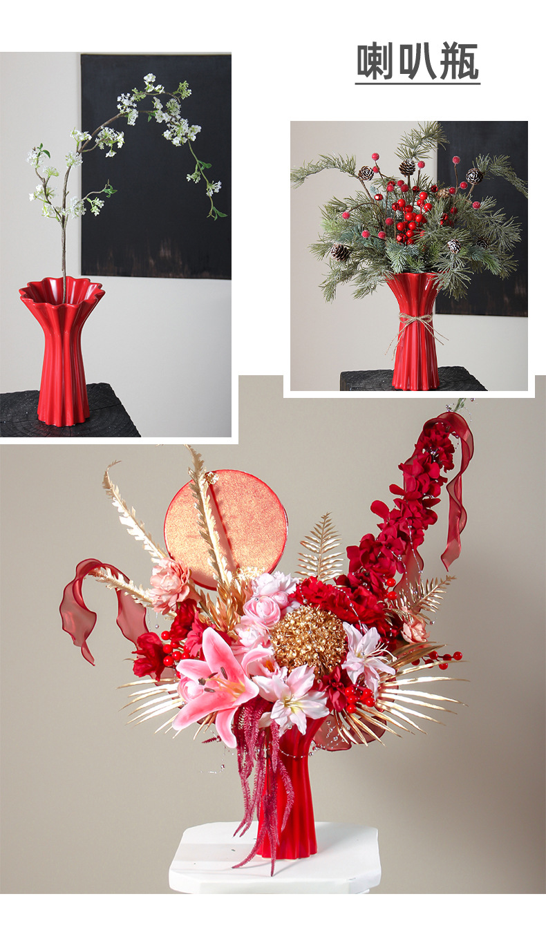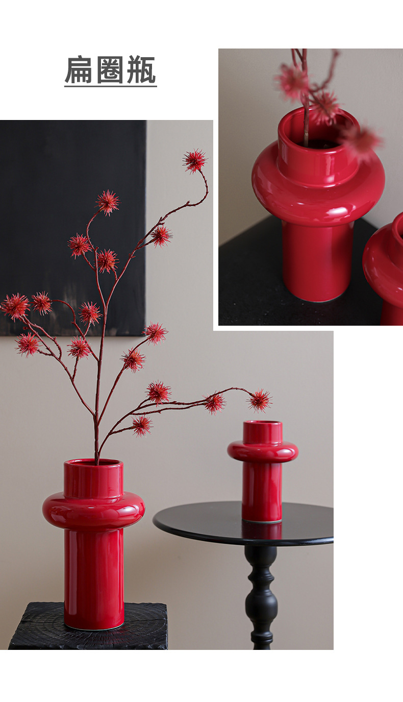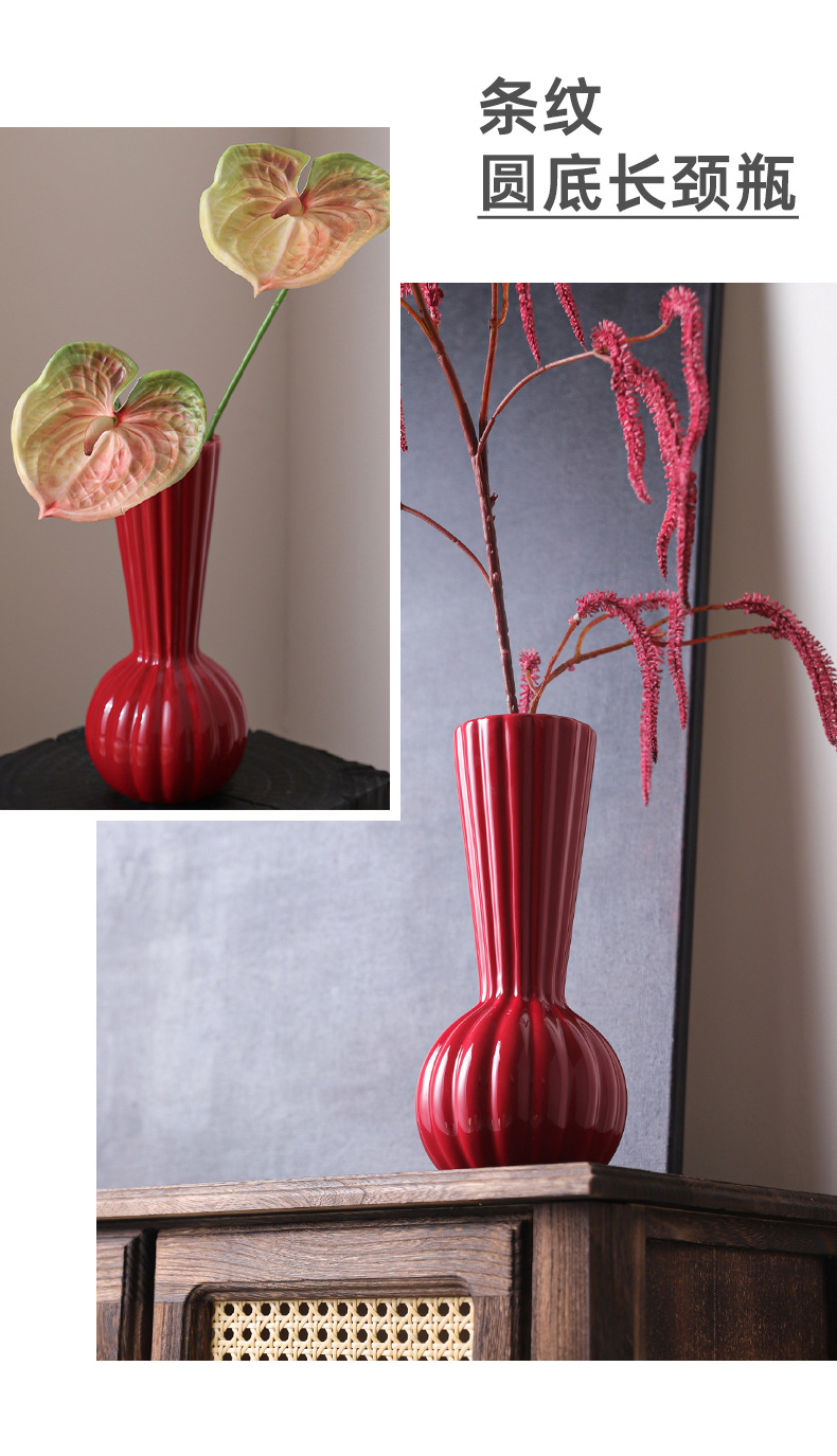 빨간색 꽃병 세라믹 중세 고급 중국 스타일 고가치 결혼식 장식 꽃병 축제 선물 도매