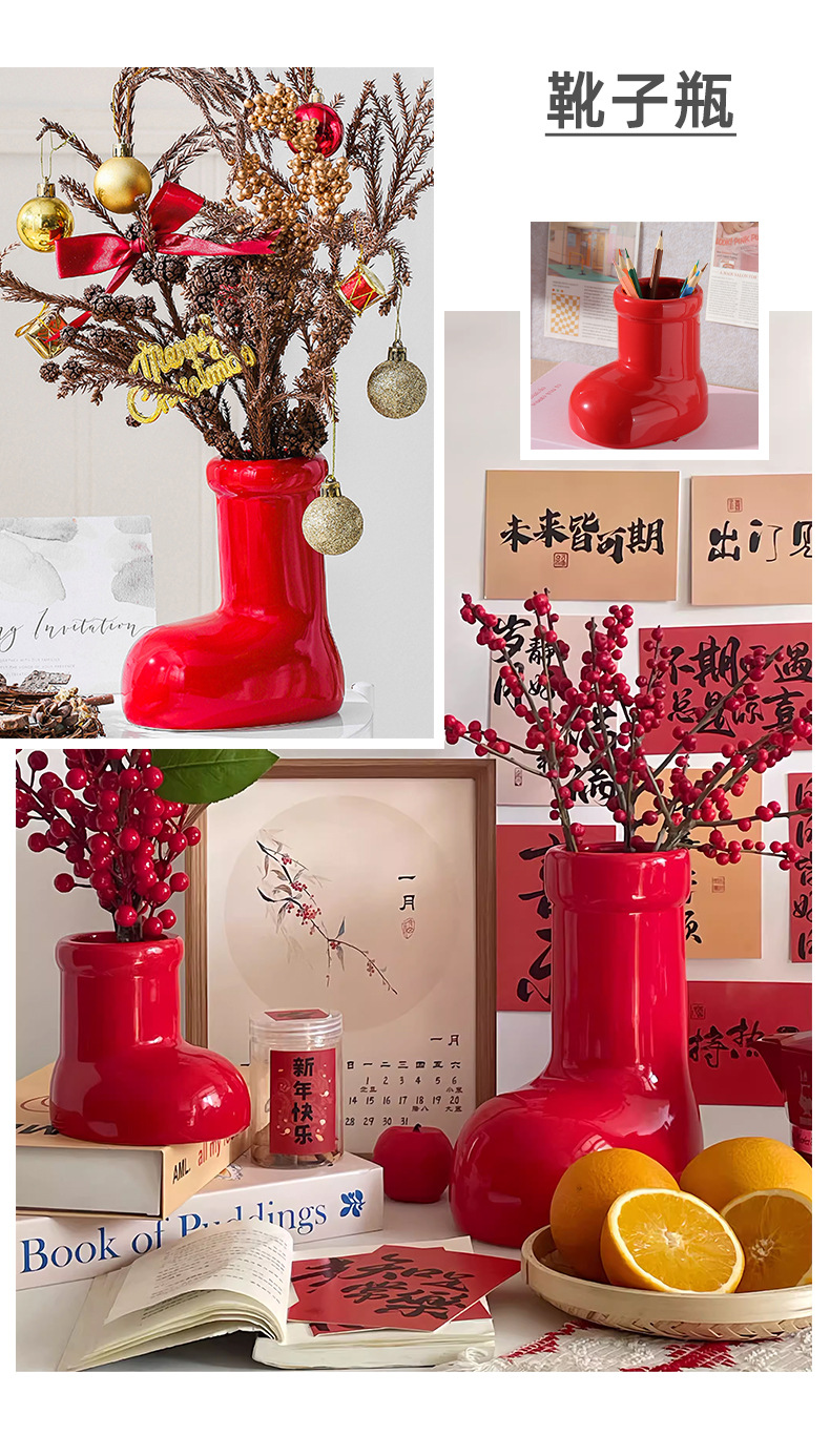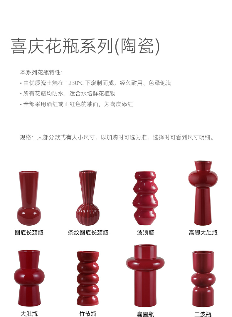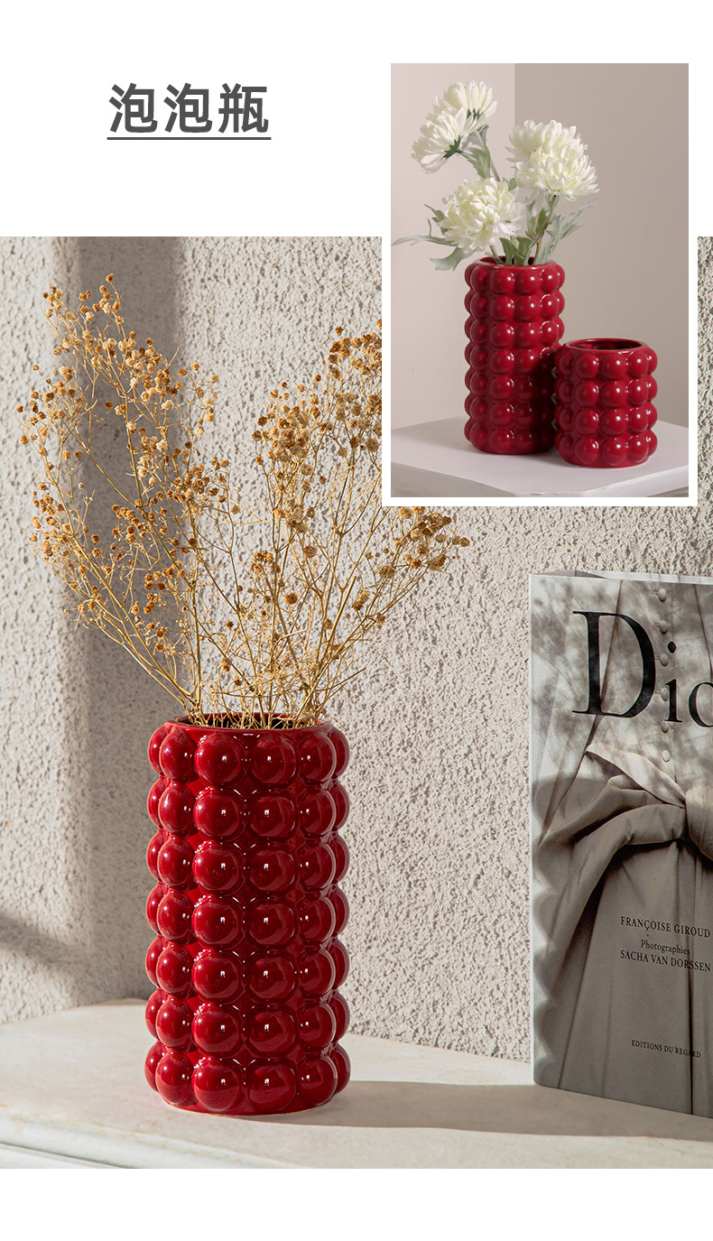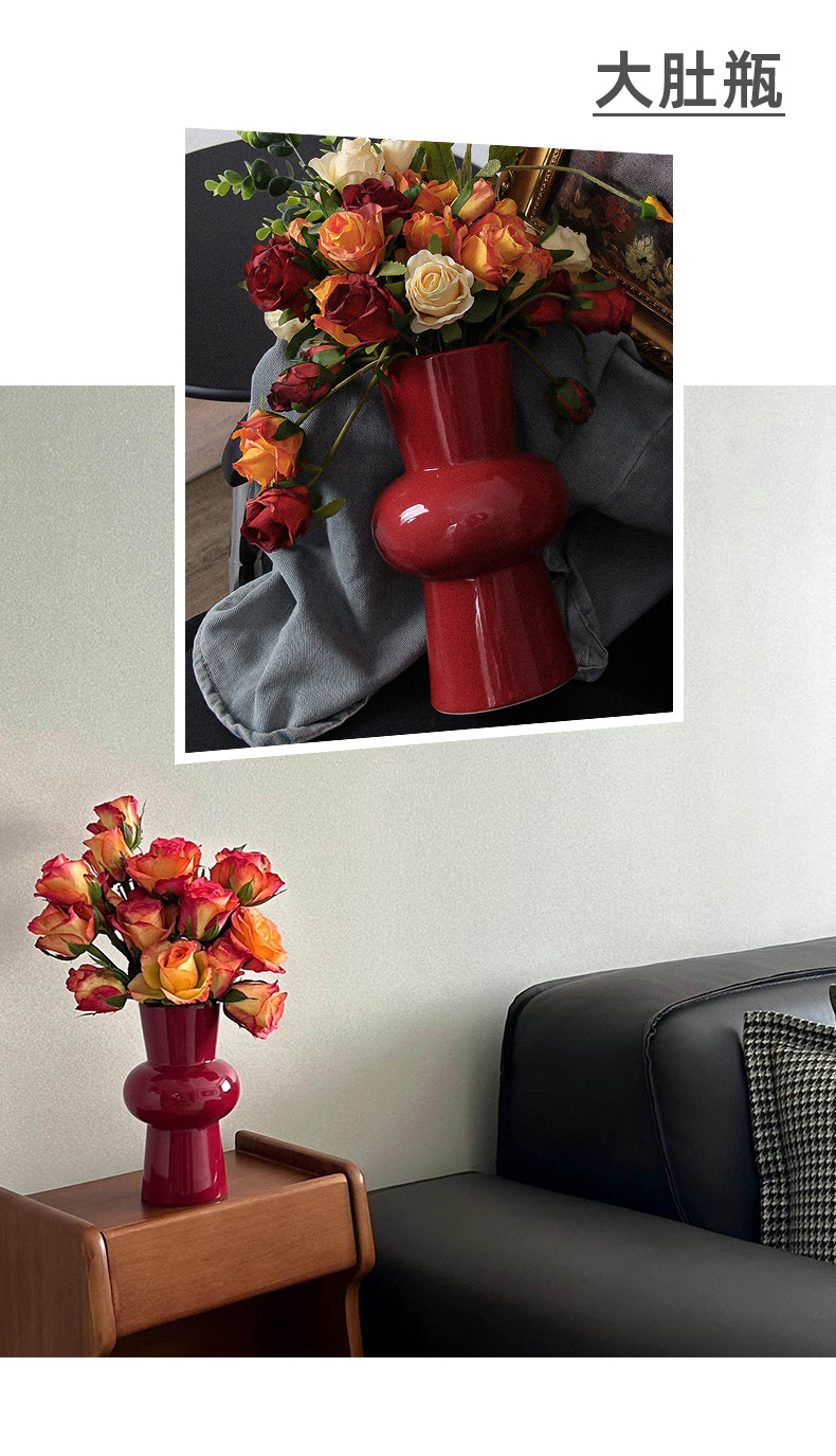 빨간색 꽃병 세라믹 중세 고급 중국 스타일 고가치 결혼식 장식 꽃병 축제 선물 도매