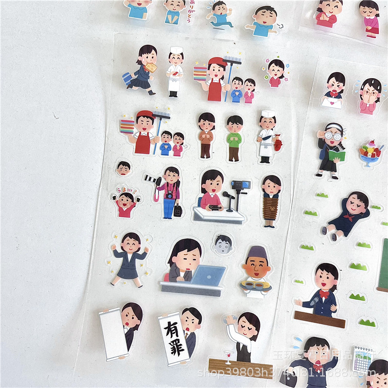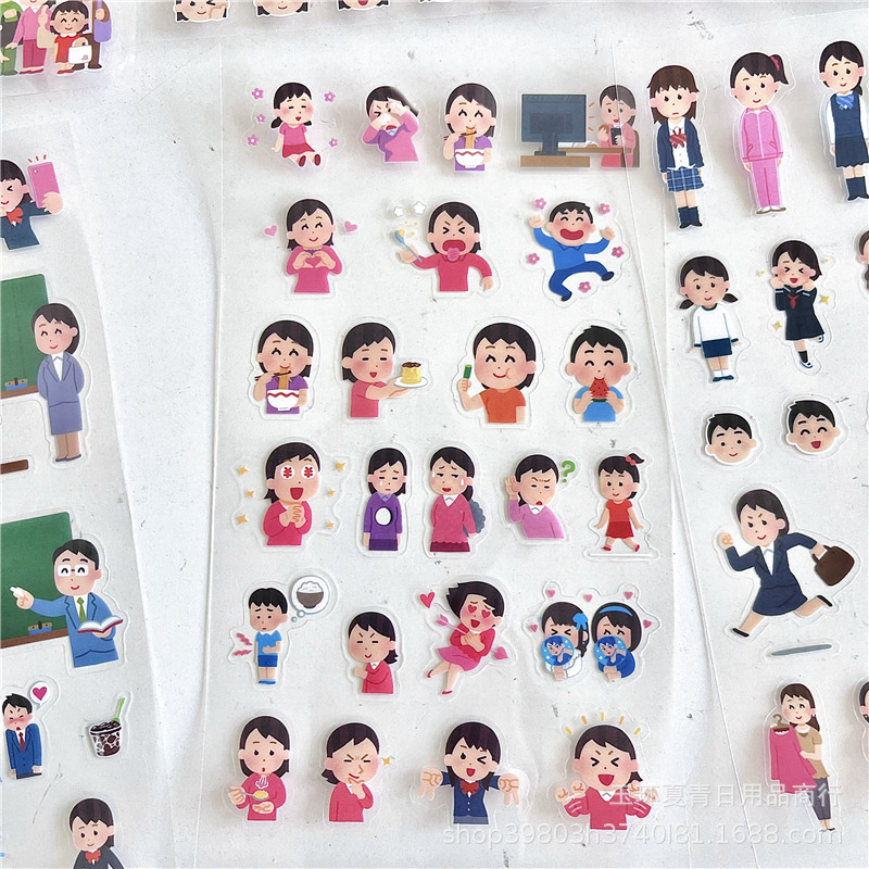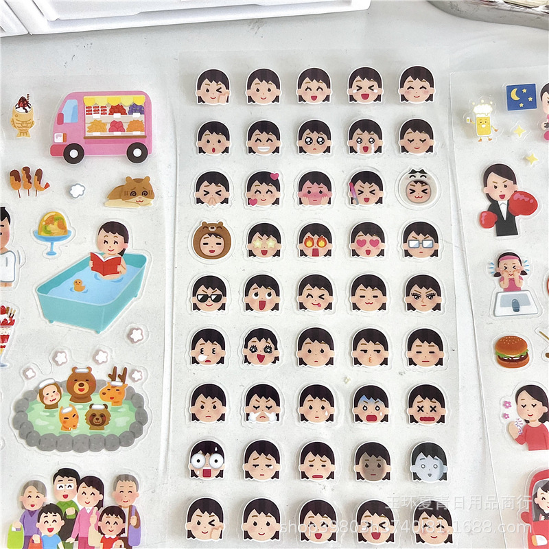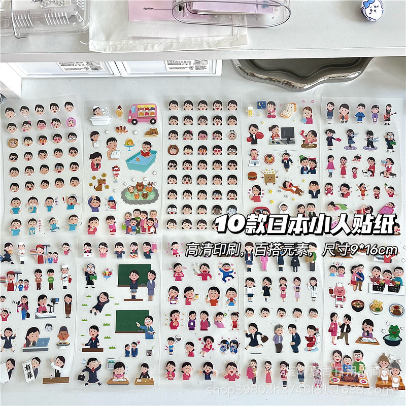 귀여운 만화 일본 작은 사람 표현 스티커 캐릭터 손 계정 손 계정 다이어리 컷 스티커를 통해 창조적 인 장식 재료스토어 가기